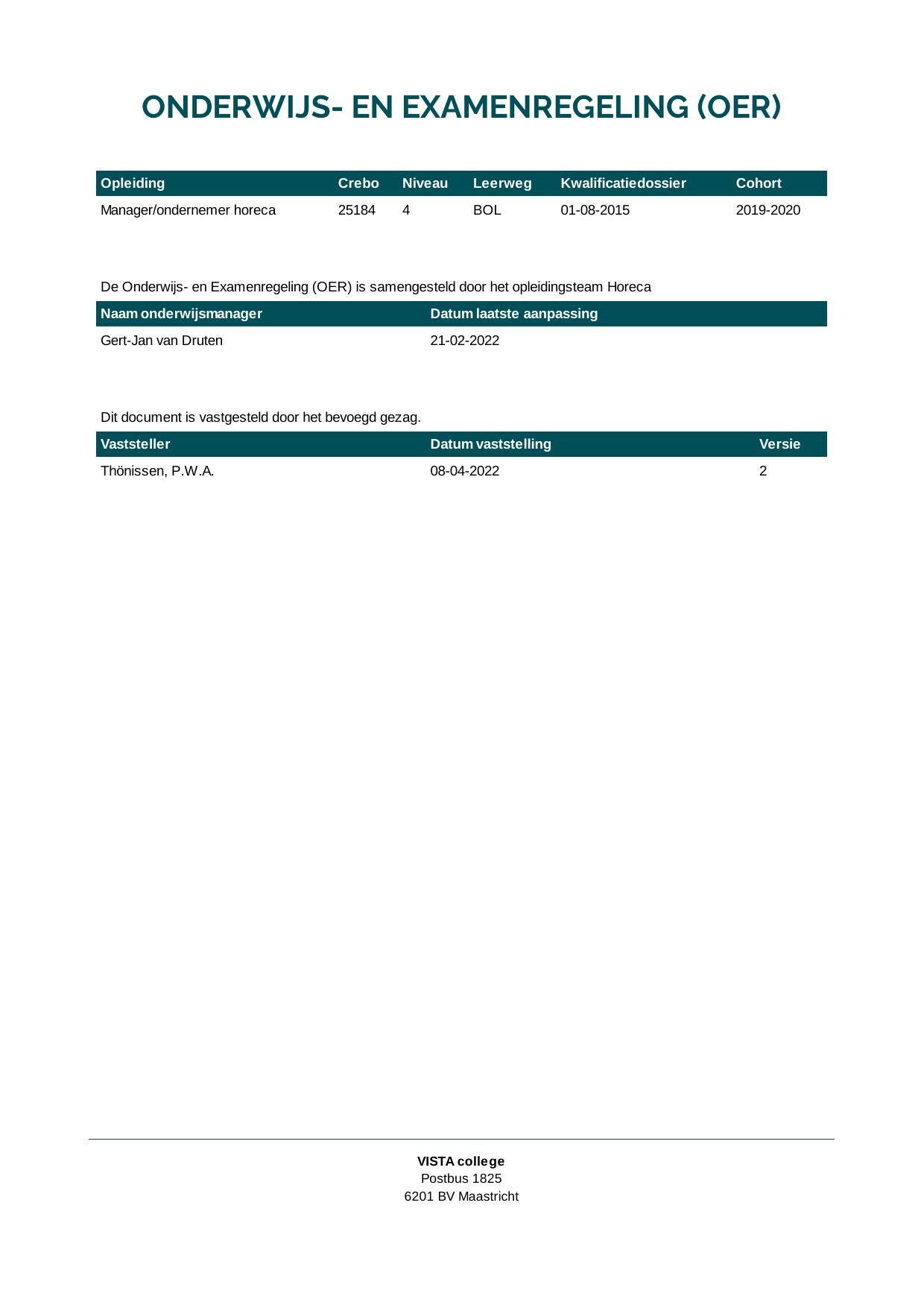 Manager/ondernemer horeca 25184O1S in cohort 2019-2020