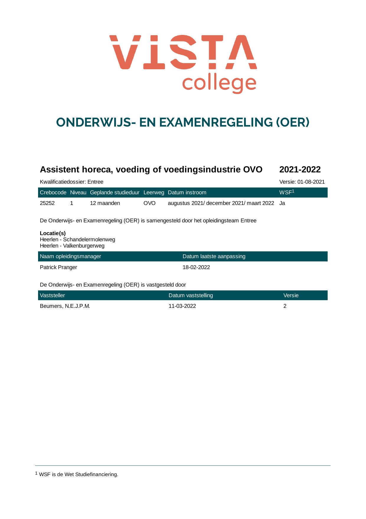 Assistent horeca, voeding of voedingsindustrie OVO 25252OVO in cohort 2021-2022