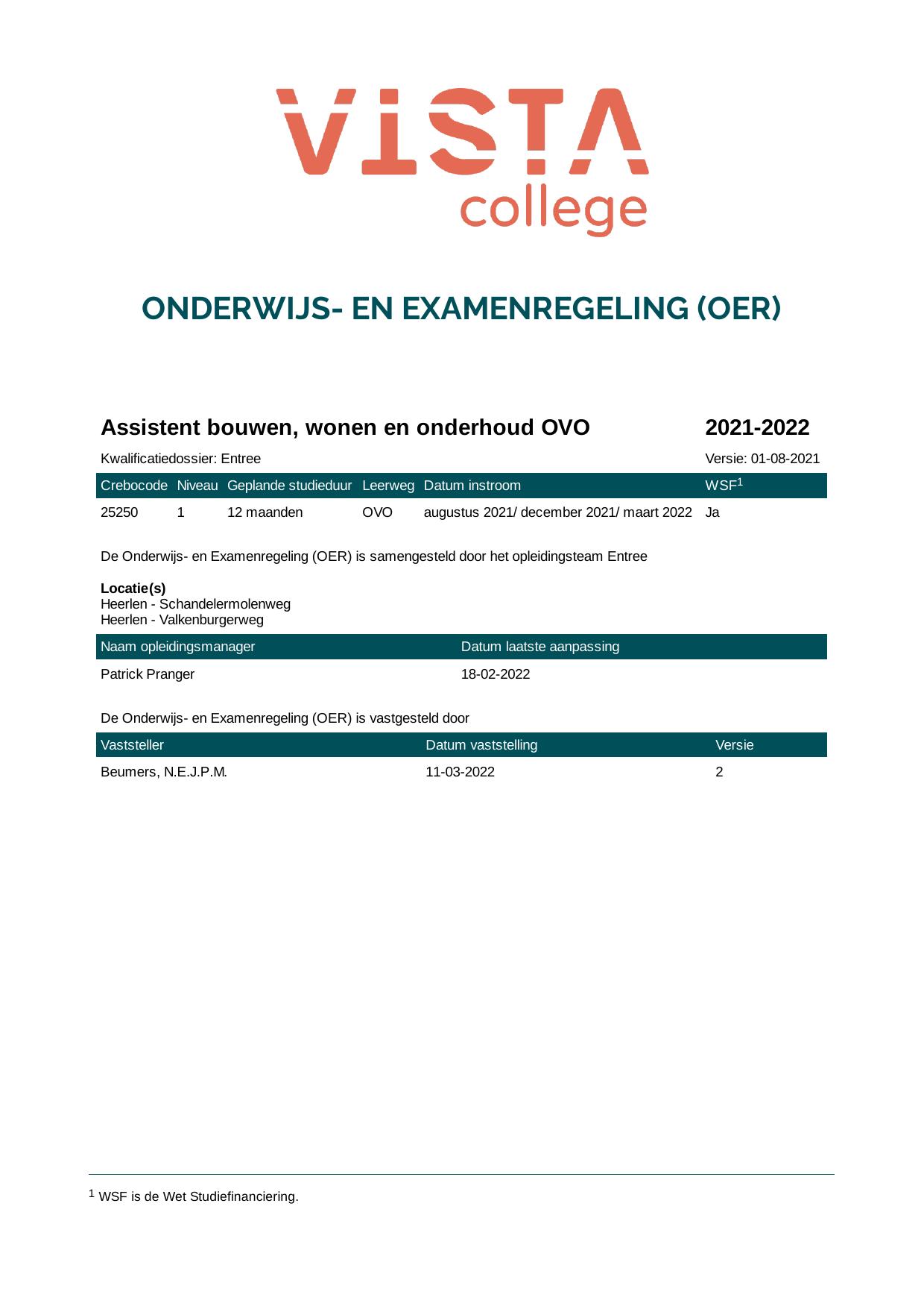 Assistent bouwen, wonen en onderhoud OVO 25250OVO in cohort 2021-2022