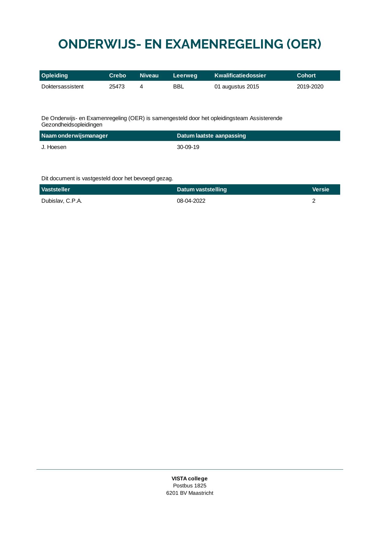 Doktersassistent 25473B1S in cohort 2019-2020