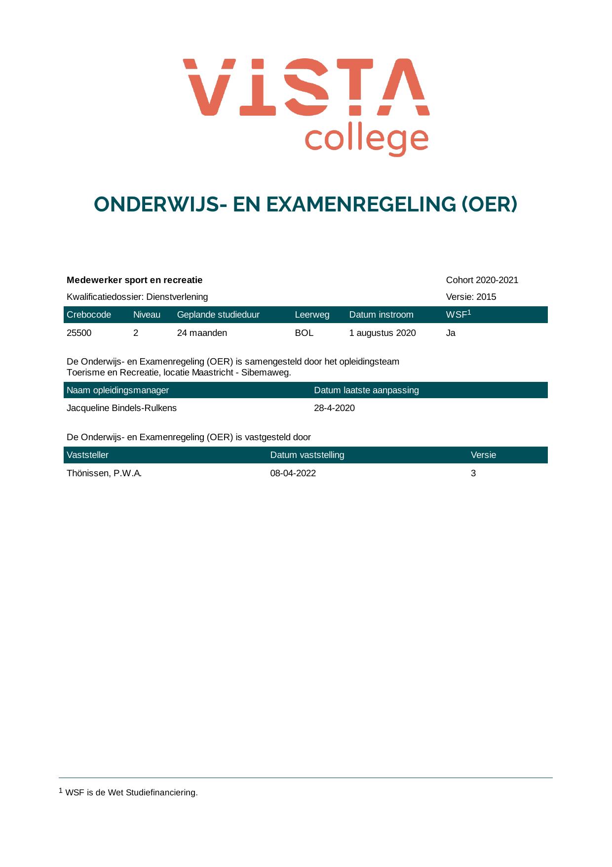 Medewerker sport en recreatie 25500O1S in cohort 2020-2021