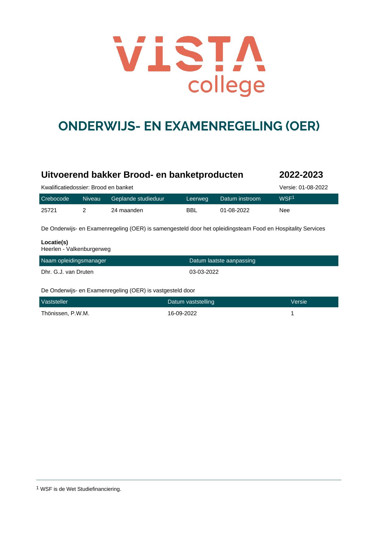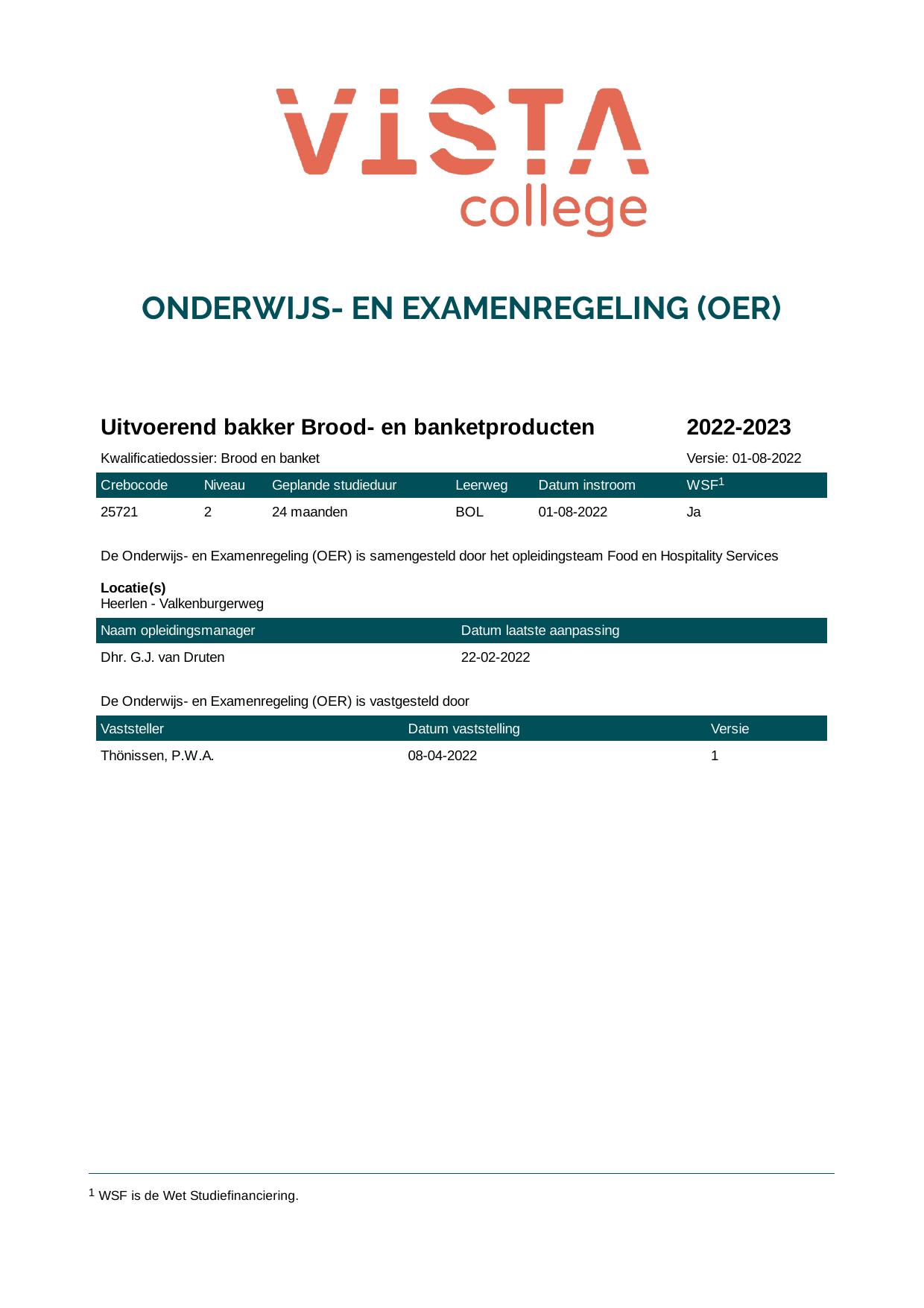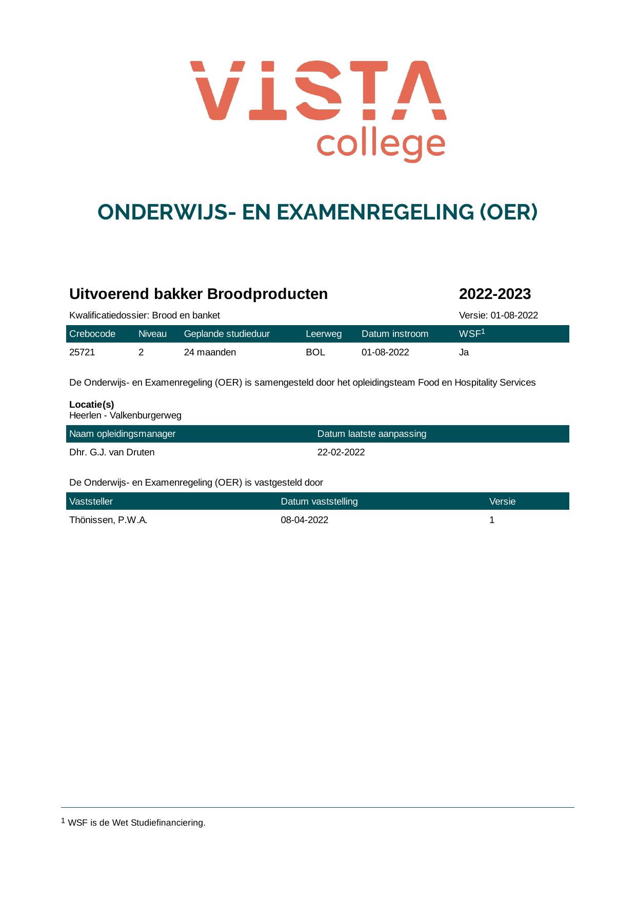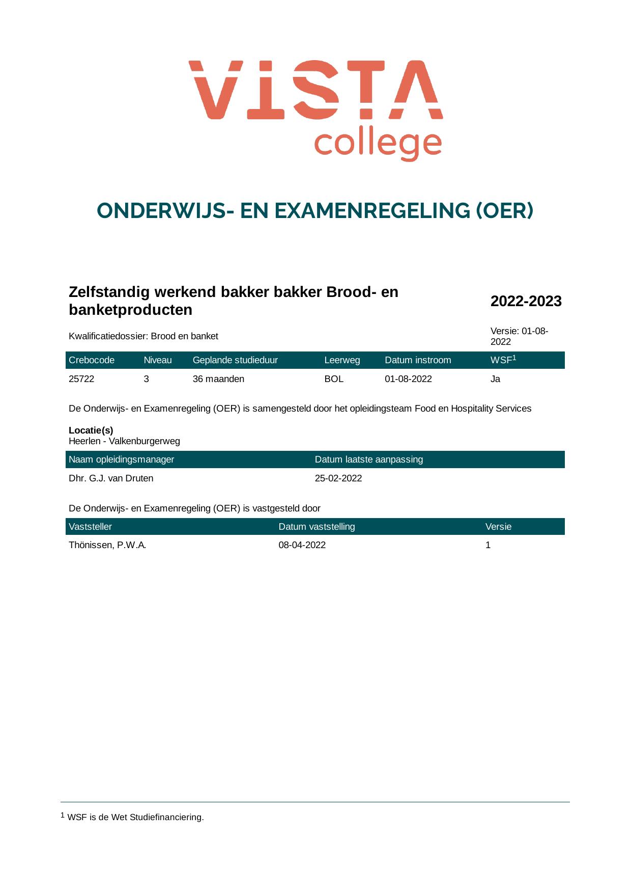 Zelfstandig werkend bakker bakker Brood- en banketproducten 25722O1S in cohort 2022-2023