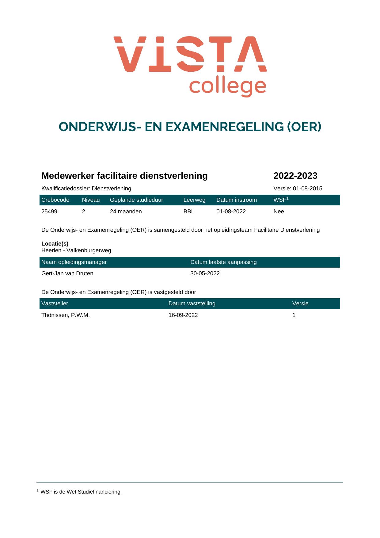 Medewerker facilitaire dienstverlening 25499B1S in cohort 2022-2023