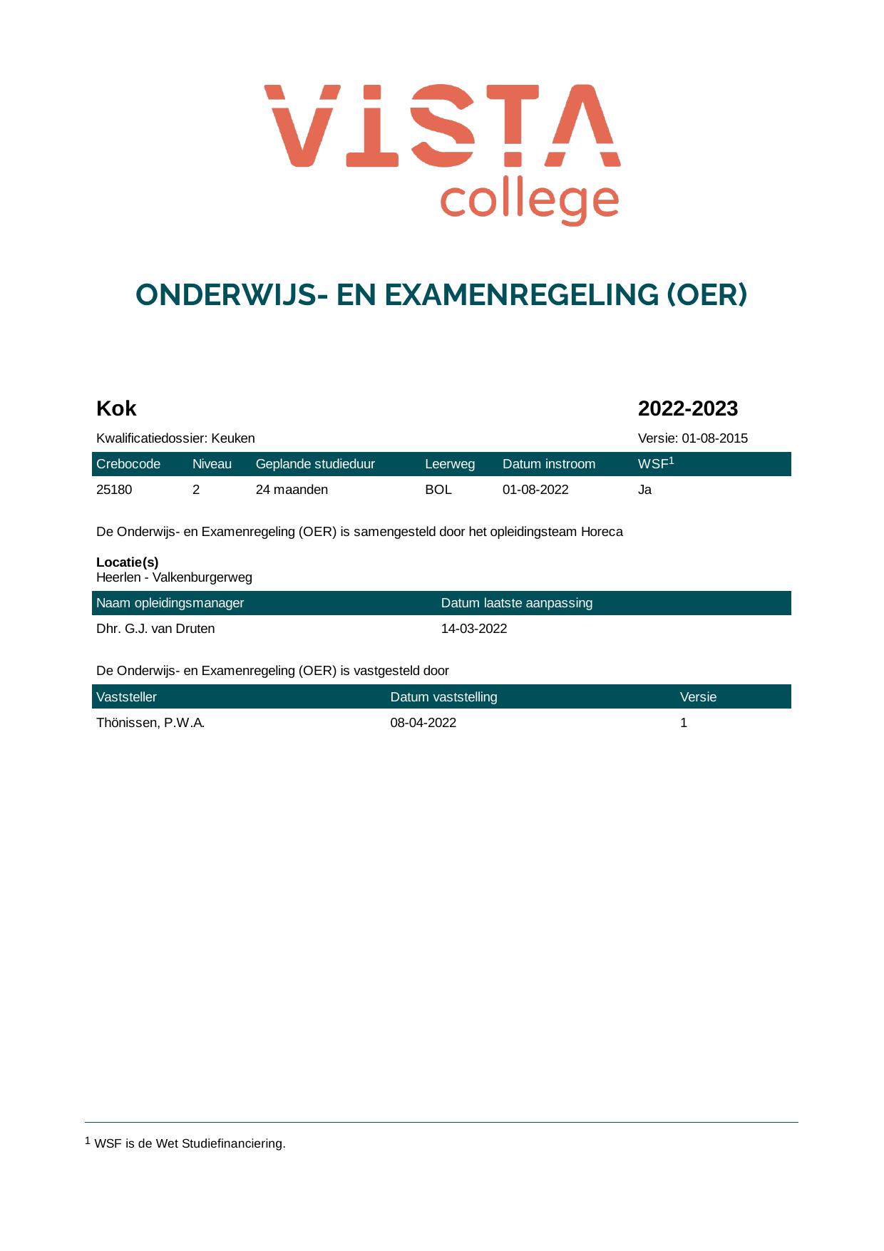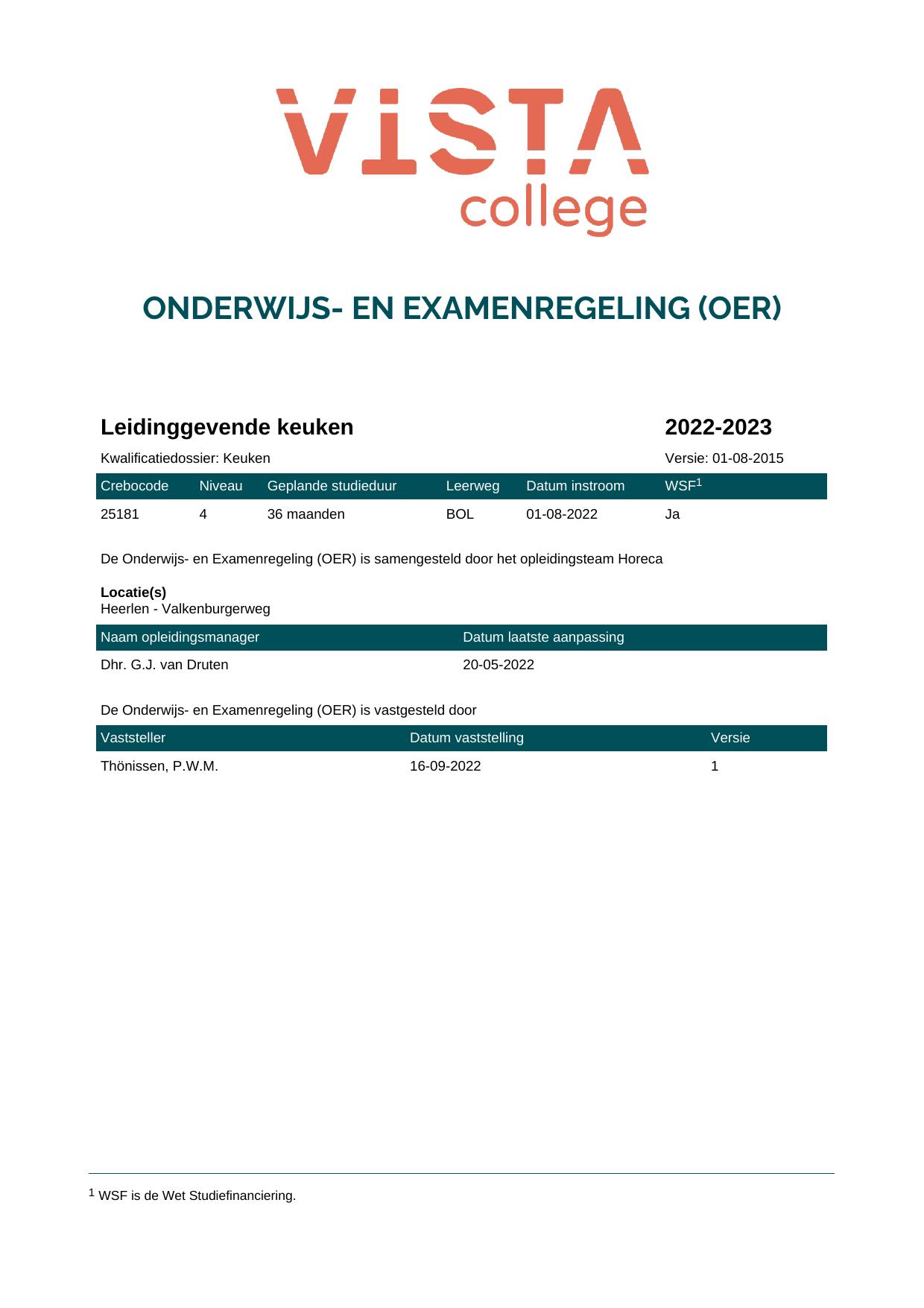 Leidinggevende keuken 25181O1S in cohort 2022-2023