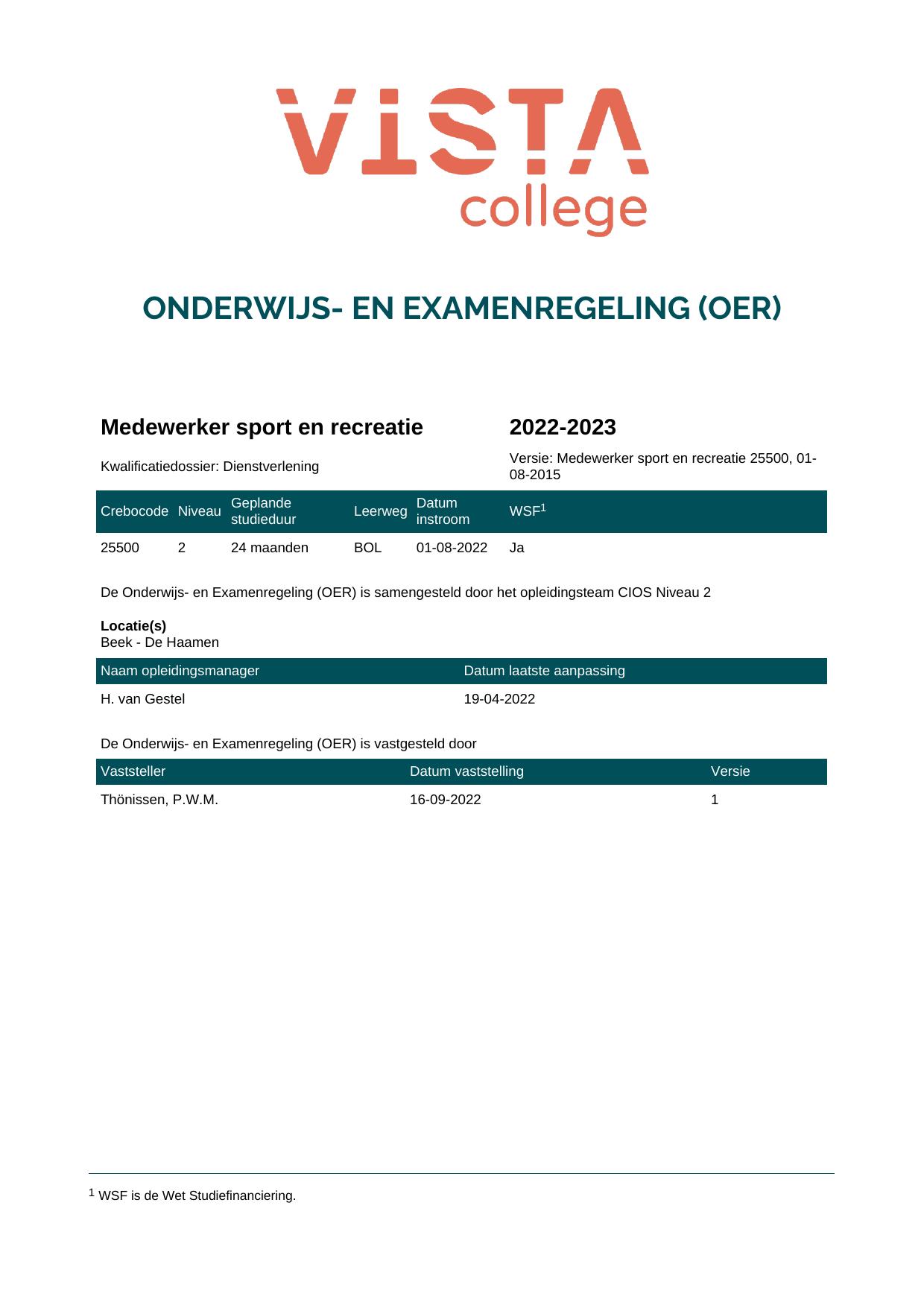 Medewerker sport en recreatie 2E25500BV2V1 in cohort 2022-2023