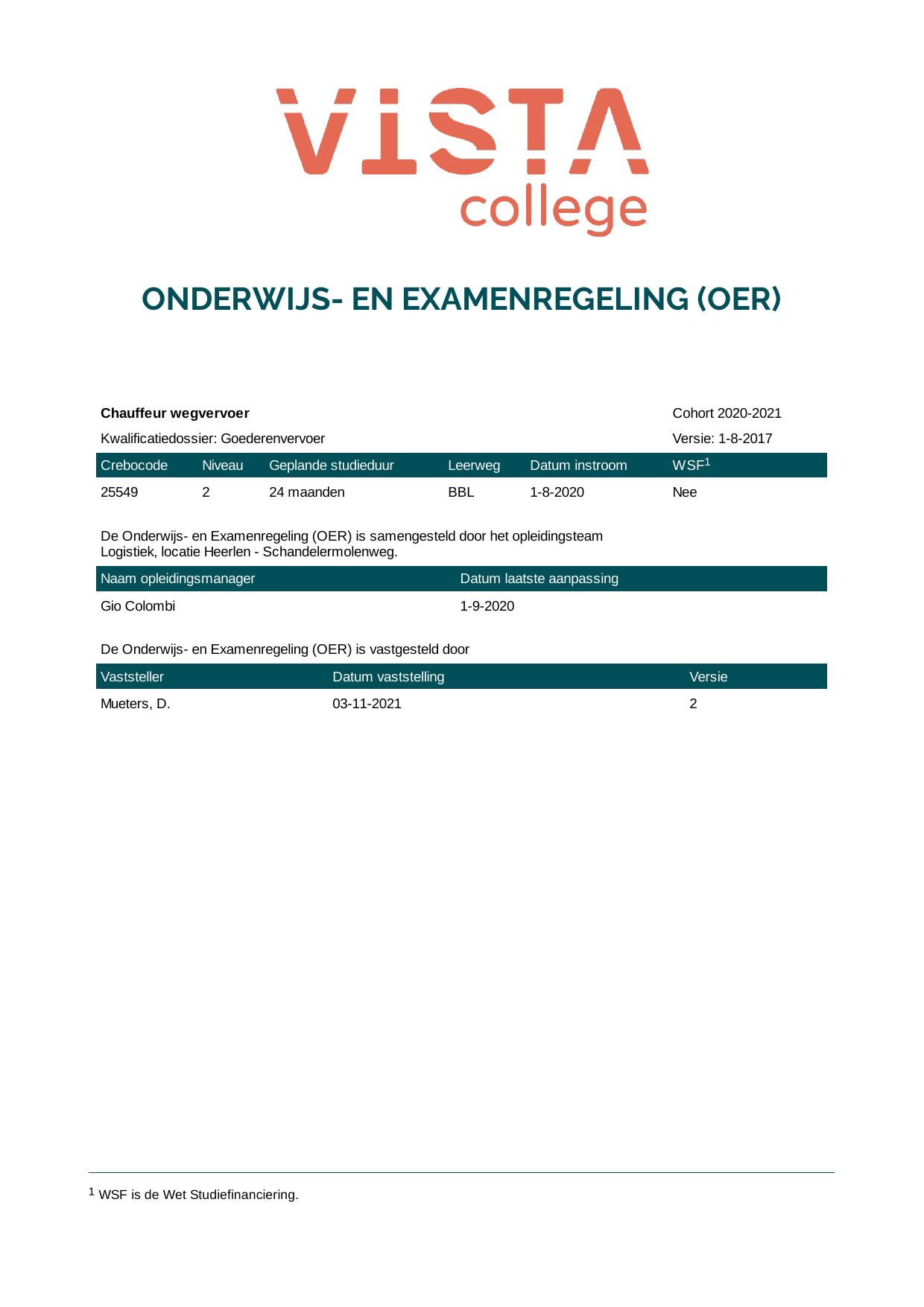 Chauffeur wegvervoer 25549B1S in cohort 2020-2021