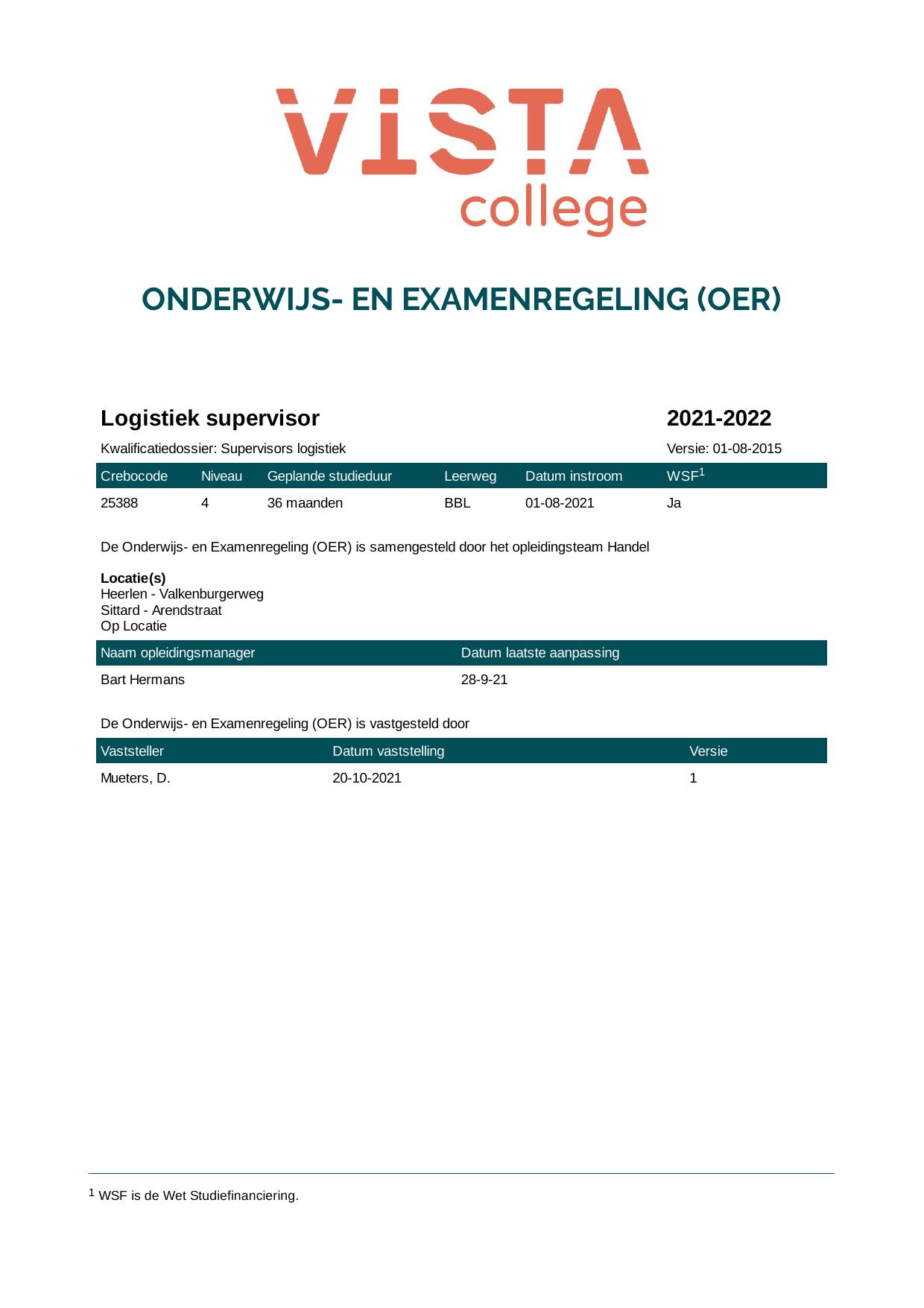 Logistiek supervisor 25388B1S in cohort 2021-2022