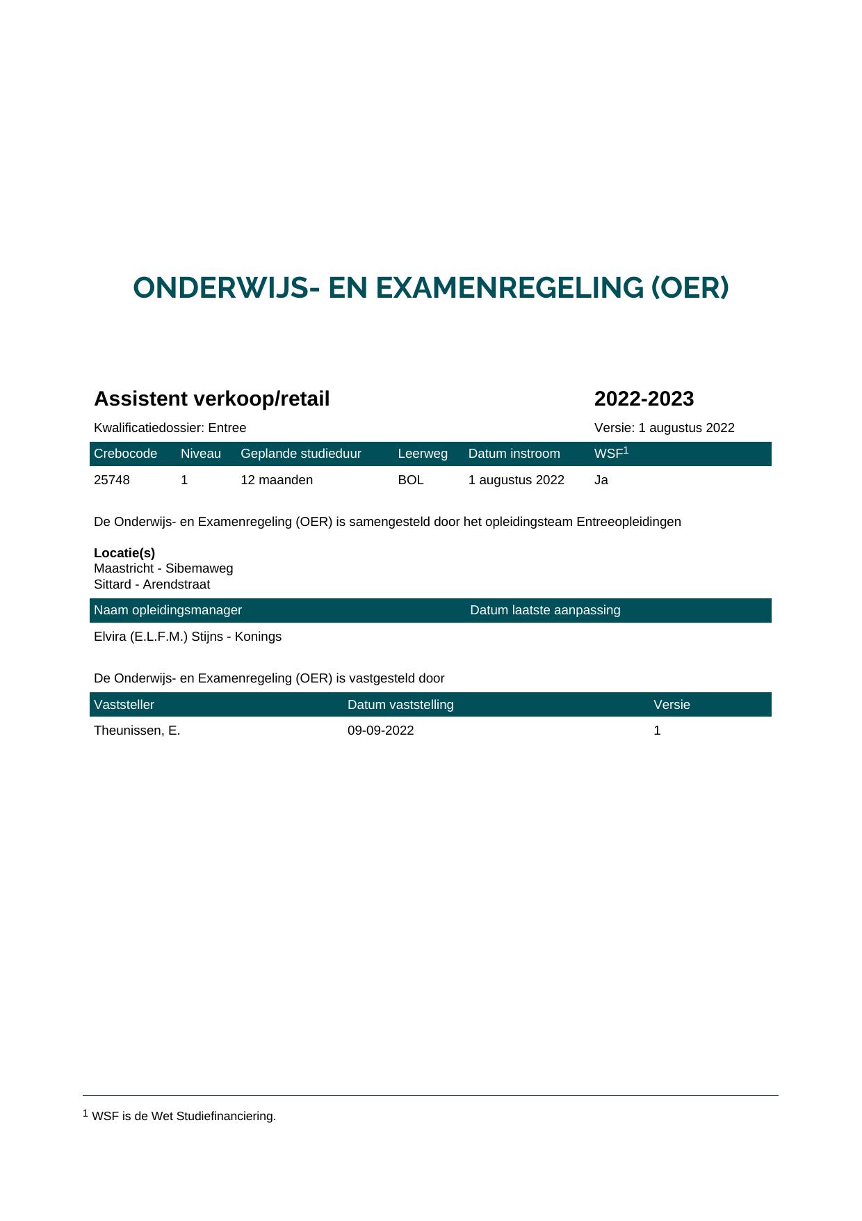 Assistent verkoop/retail 5A25748BV1V1 in cohort 2022-2023