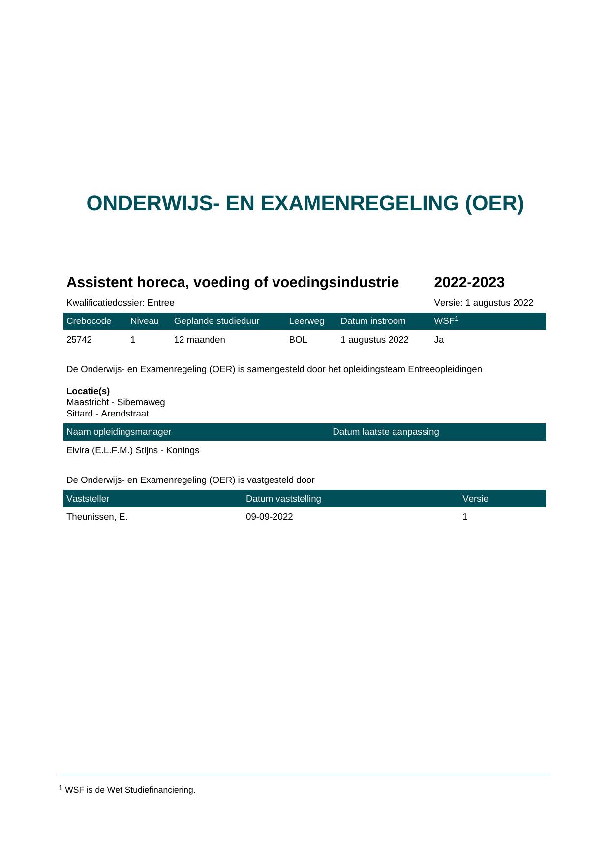 Assistent horeca, voeding of voedingsindustrie 5A25742BV1V1 in cohort 2022-2023