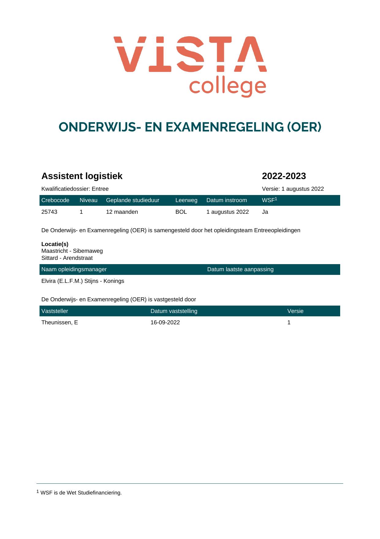 Assistent logistiek 5A25743BV1V1 in cohort 2022-2023