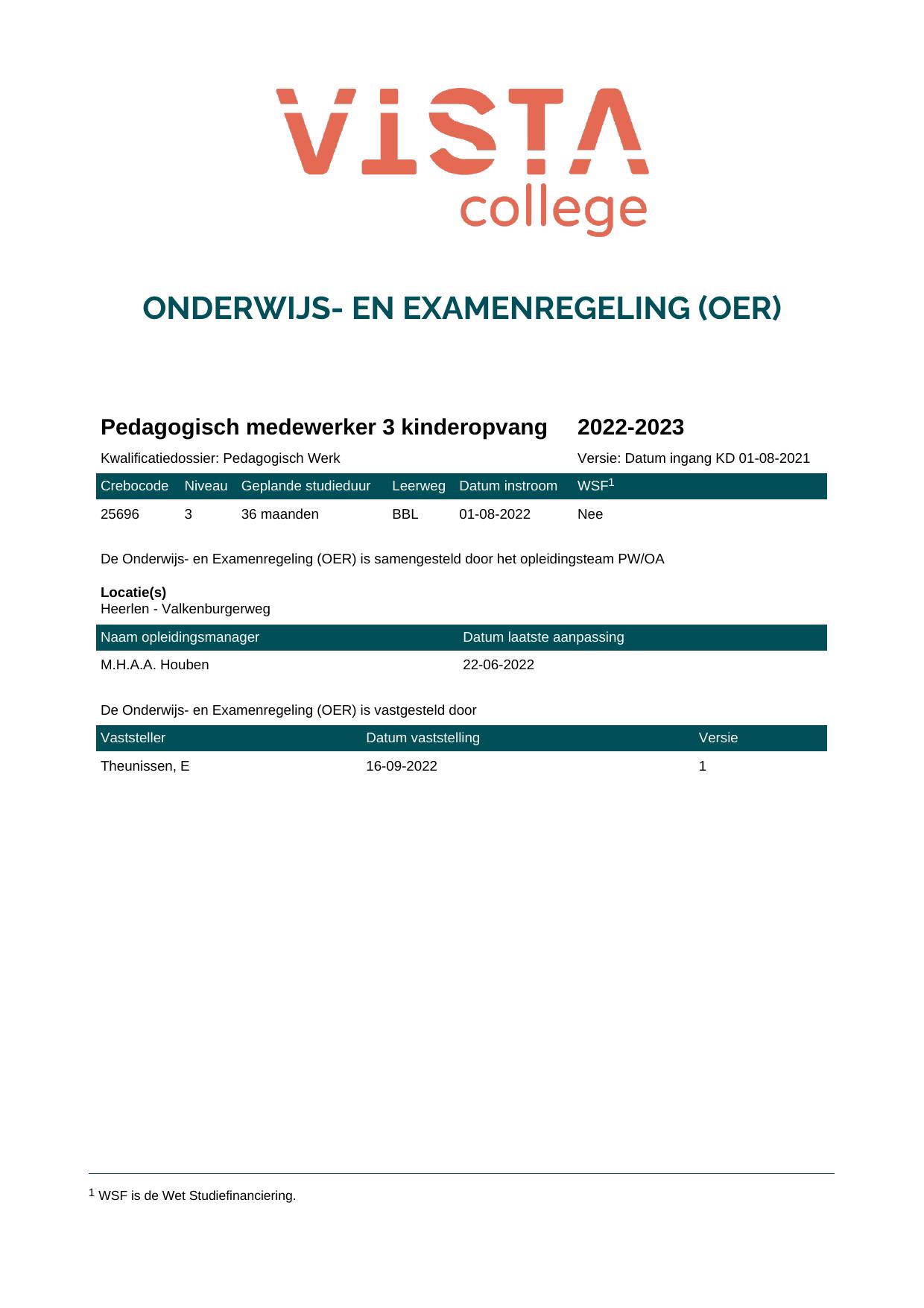 Pedagogisch medewerker 3 kinderopvang 25696B1S in cohort 2022-2023