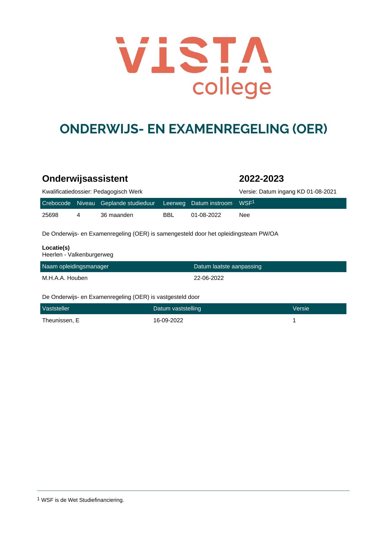 Onderwijsassistent 25698B1S in cohort 2022-2023