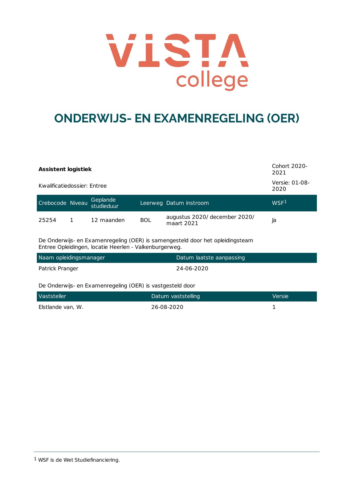 Assistent logistiek 25254O1S in cohort 2020-2021