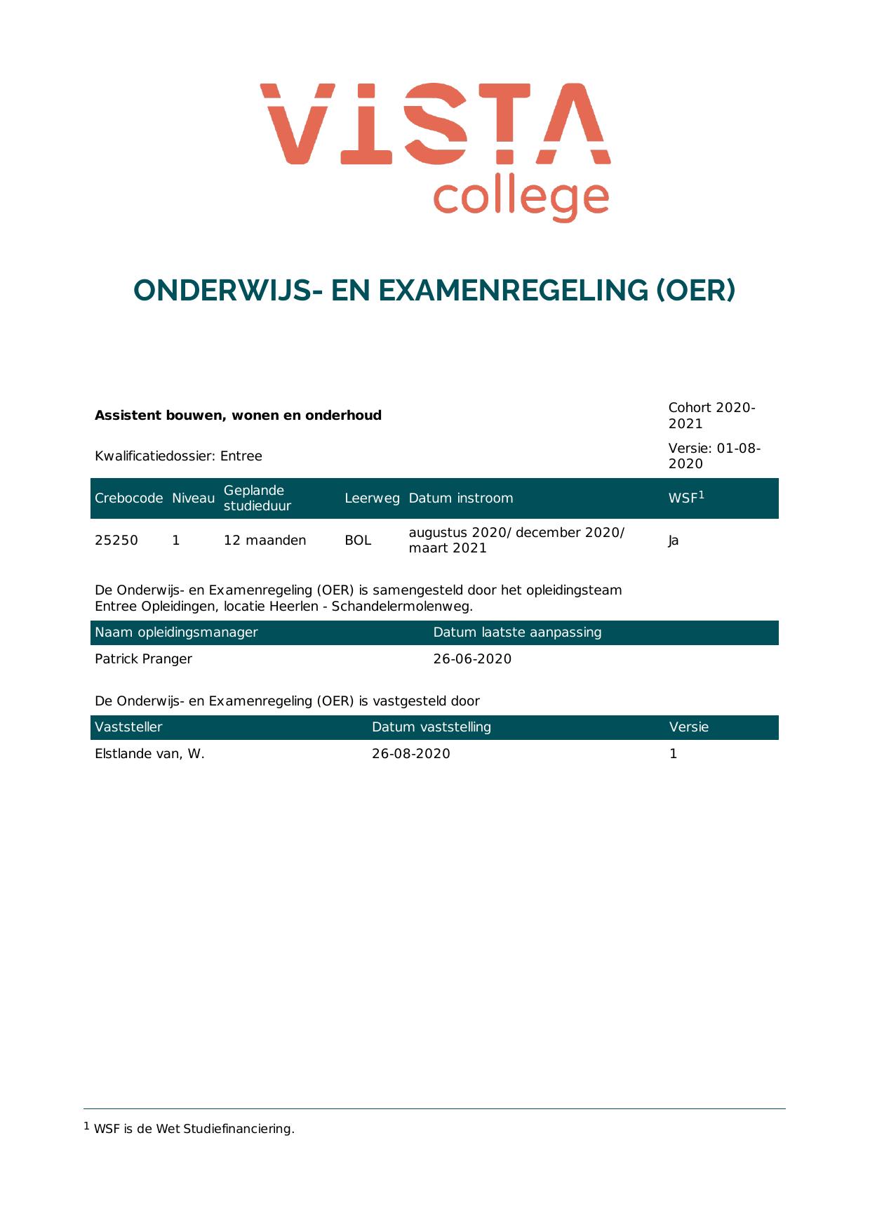 Assistent bouwen, wonen en onderhoud 25250O1S in cohort 2020-2021