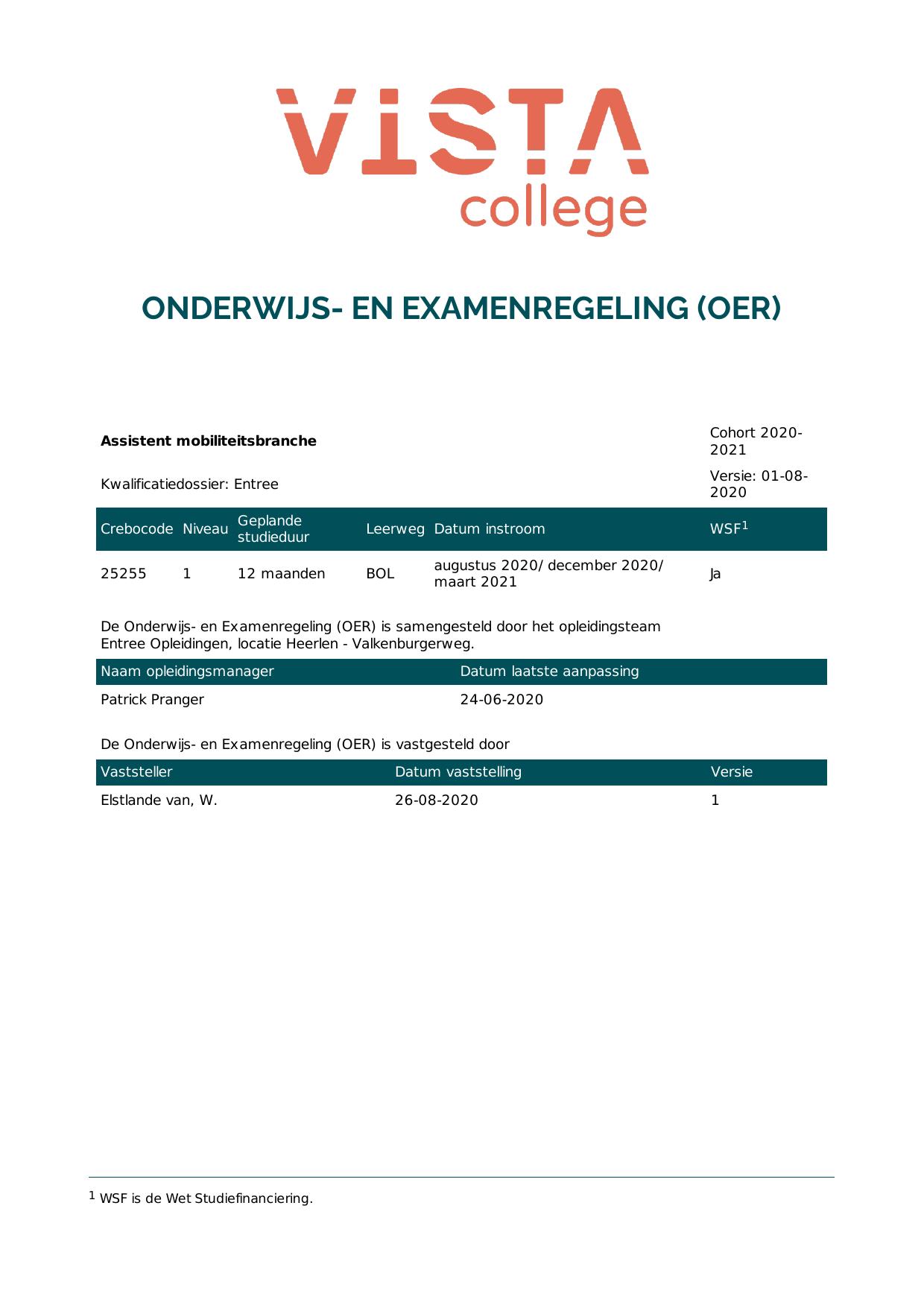 Assistent mobiliteitsbranche 25255O1S in cohort 2020-2021
