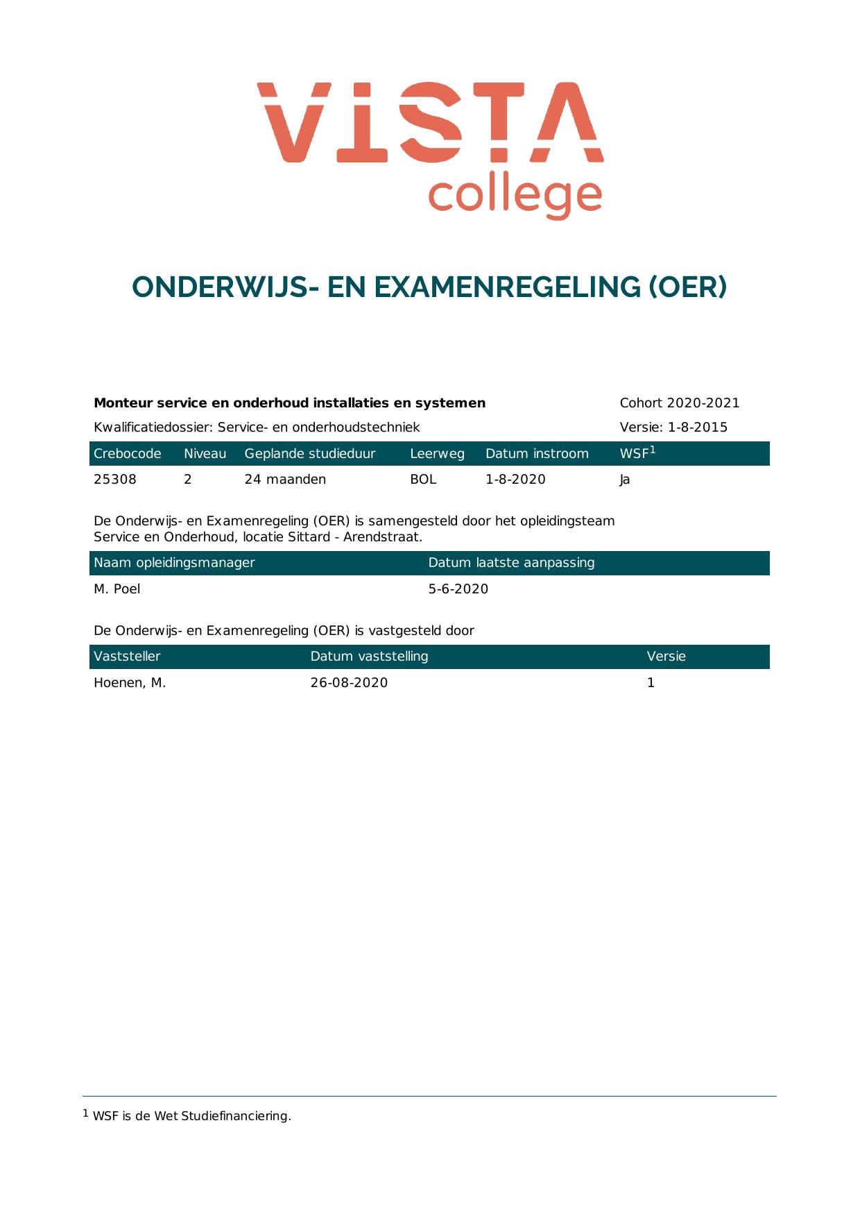Monteur service en onderhoud installaties en systemen 25308O3S in cohort 2020-2021