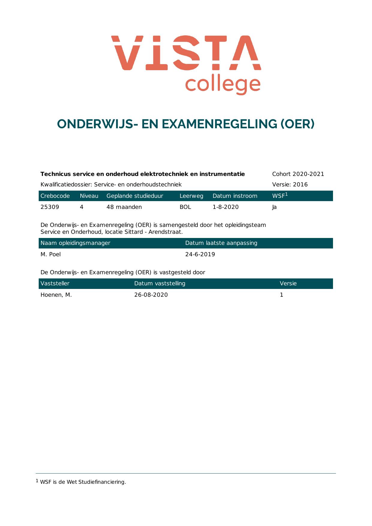 Technicus service en onderhoud elektrotechniek en instrumentatie 25309O1S in cohort 2020-2021