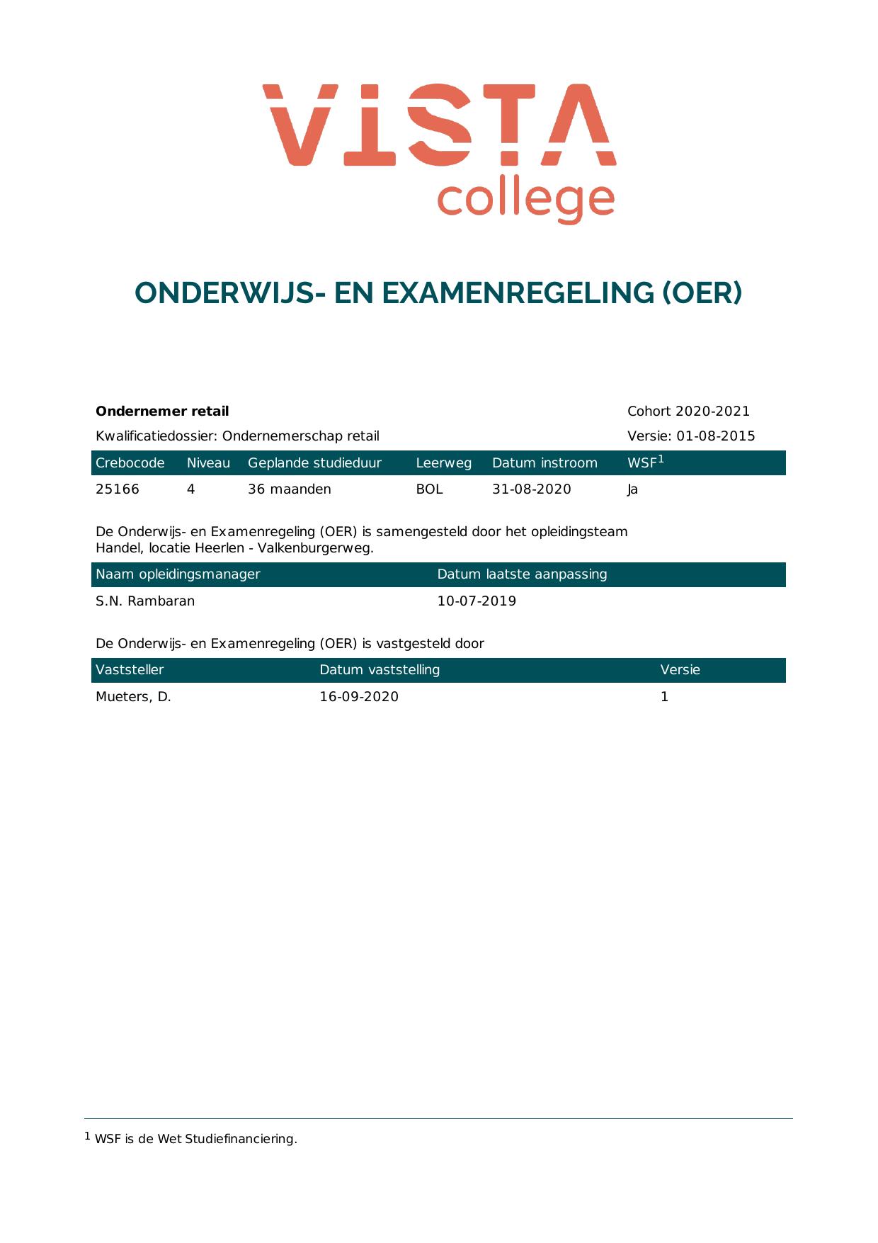 Ondernemer retail 25166O1S in cohort 2020-2021