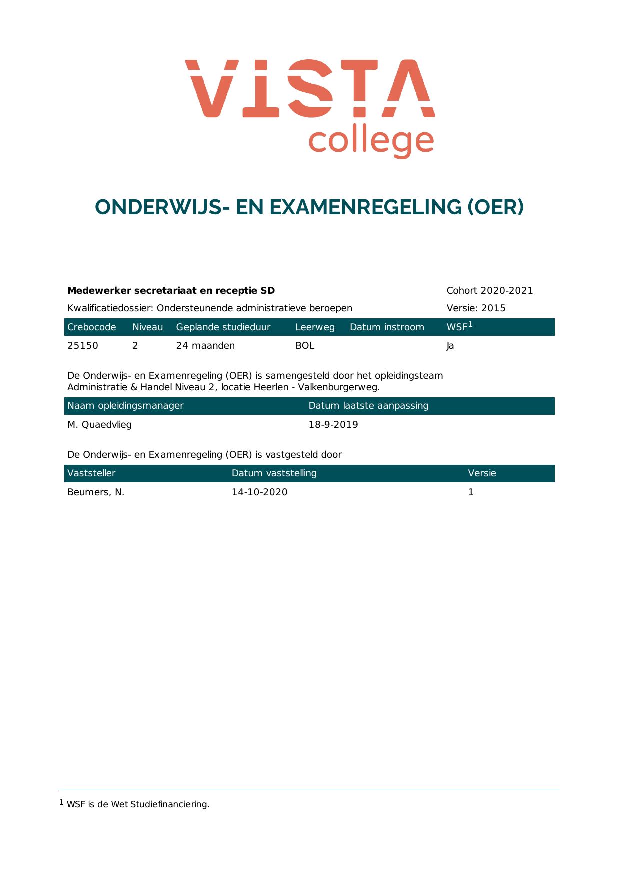 Medewerker secretariaat en receptie 25150O1S in cohort 2020-2021