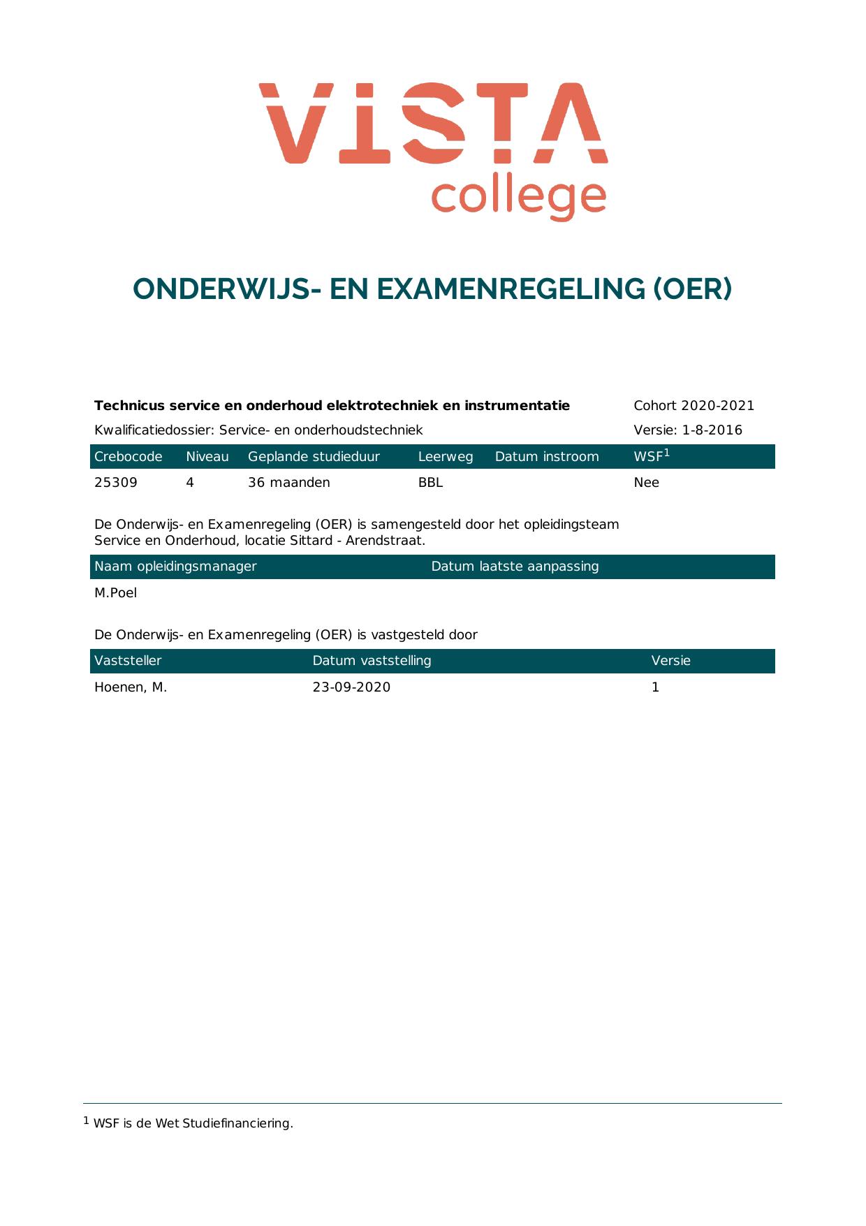 Technicus service en onderhoud elektrotechniek en instrumentatie 25309B1S in cohort 2020-2021