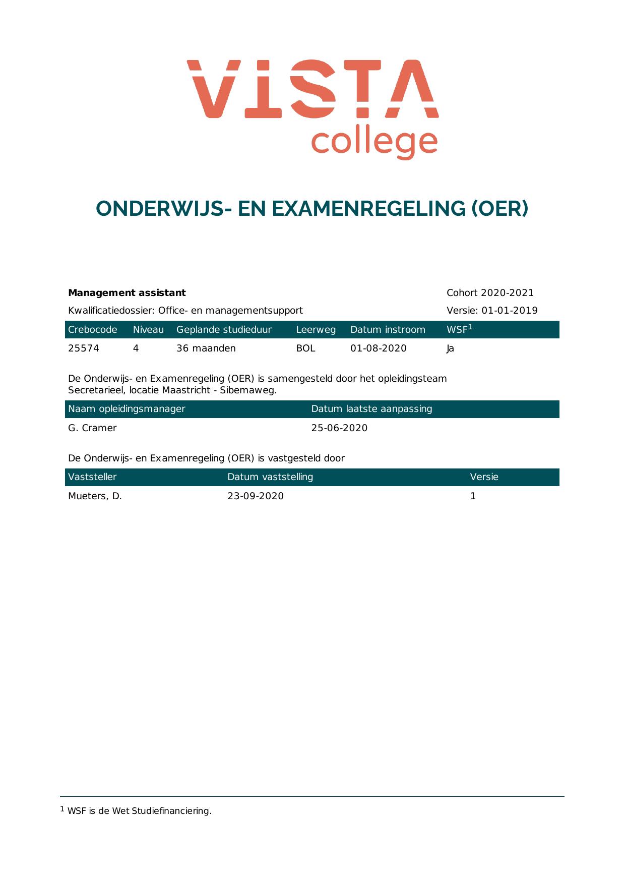 Management assistant 1S25574BV3V1 in cohort 2020-2021
