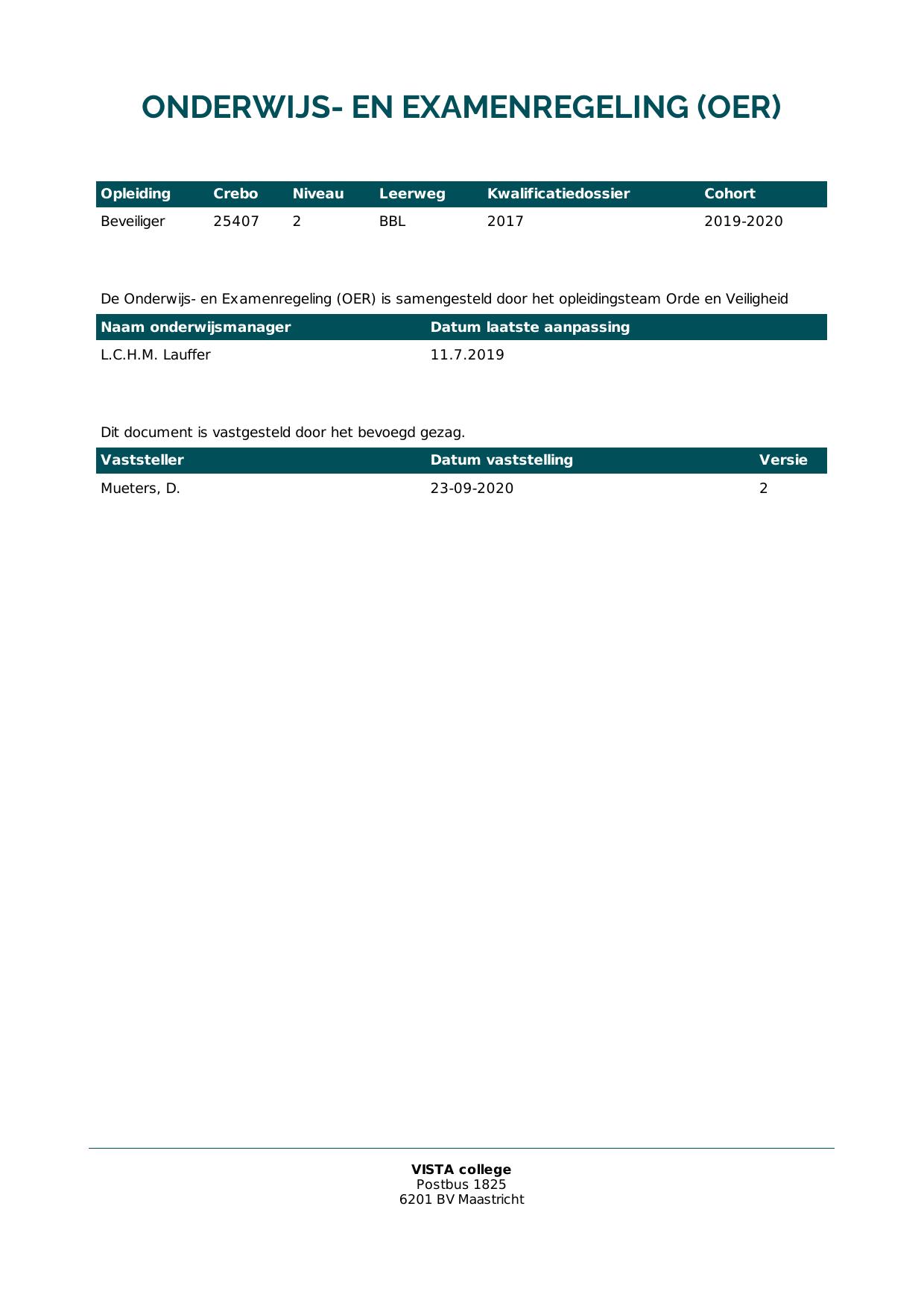 Beveiliger 25407B1S in cohort 2019-2020