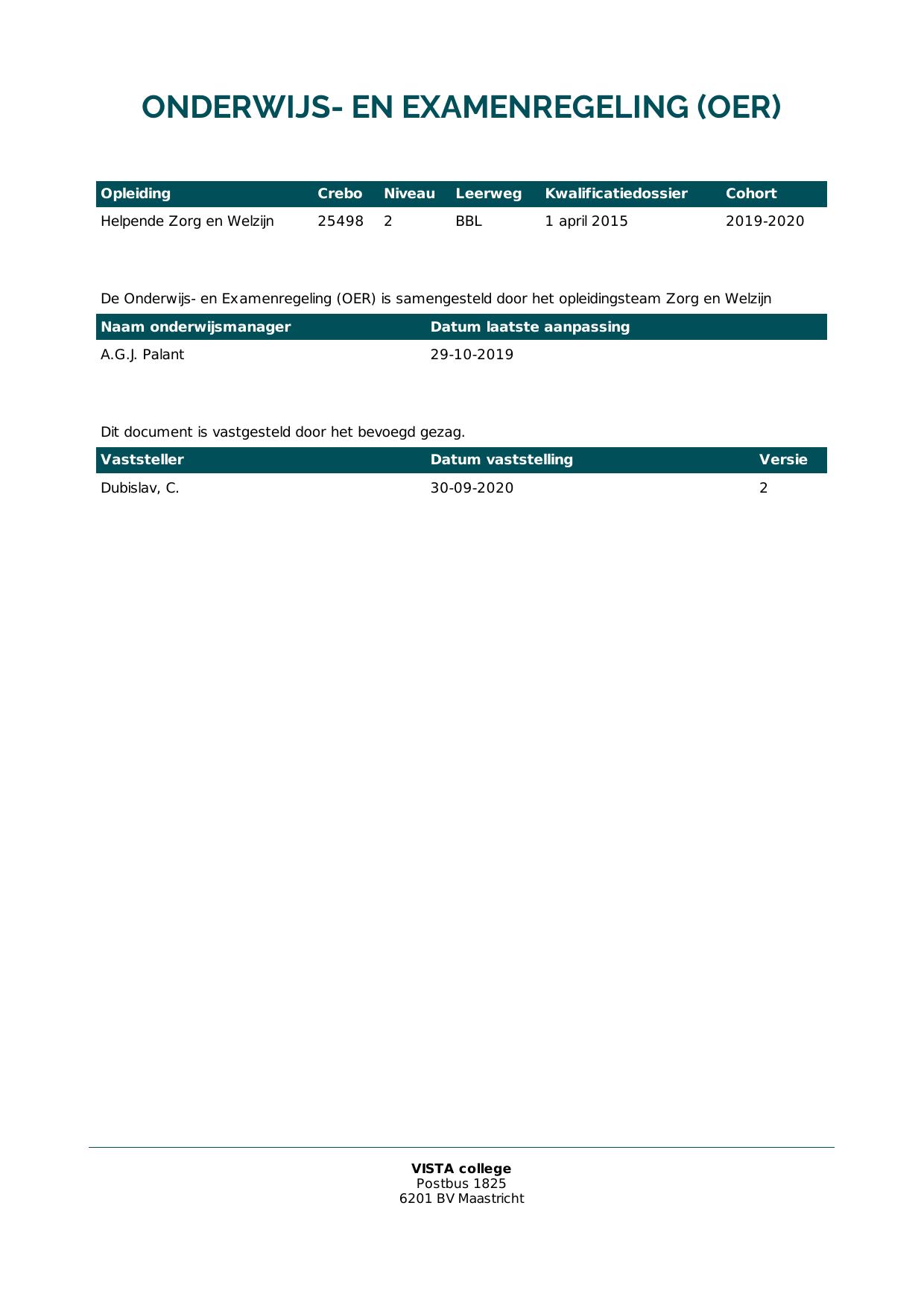 Helpende Zorg en Welzijn 25498O1S in cohort 2019-2020