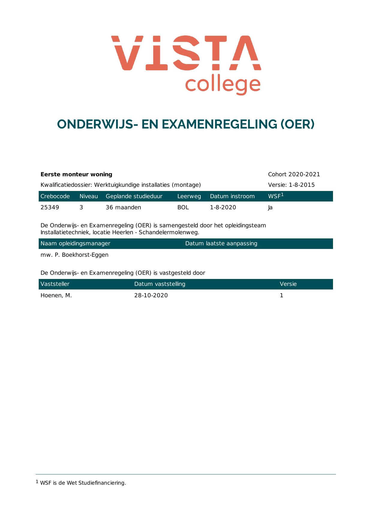 Eerste monteur woning 25349O1S in cohort 2020-2021