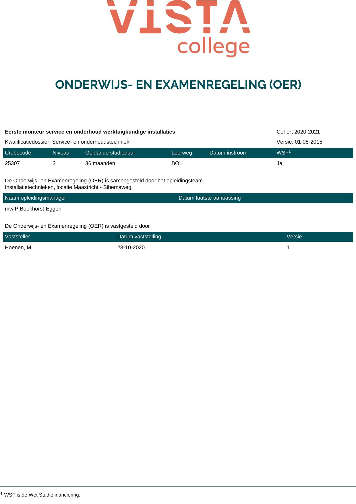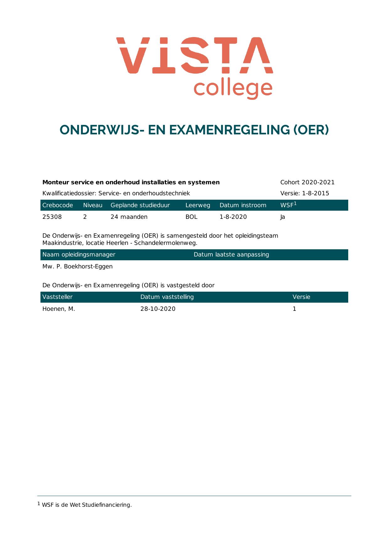Monteur service en onderhoud installaties en systemen 25308O1S in cohort 2020-2021