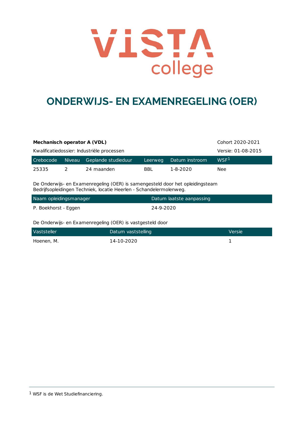 Mechanisch operator A (VDL) 25335B1EVDL in cohort 2020-2021