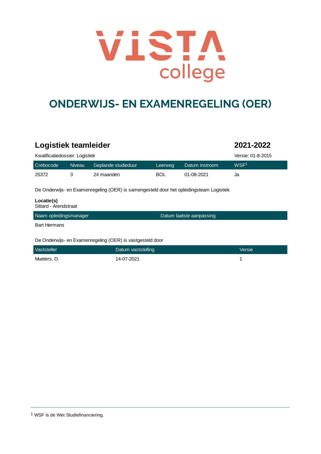 Logistiek teamleider 1L25372BB2V1 in cohort 2021-2022