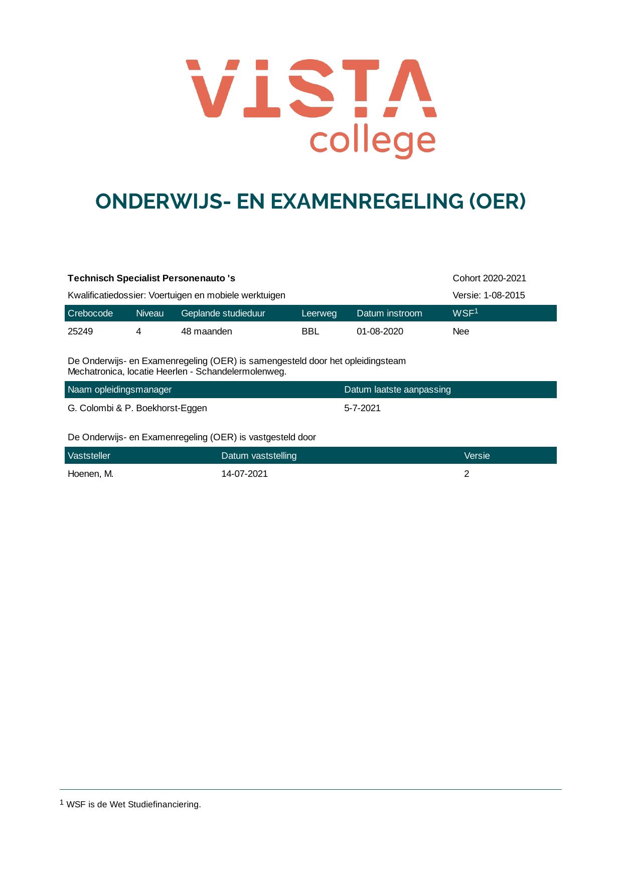 Technisch Specialist Personenauto 's 25249B1S in cohort 2020-2021