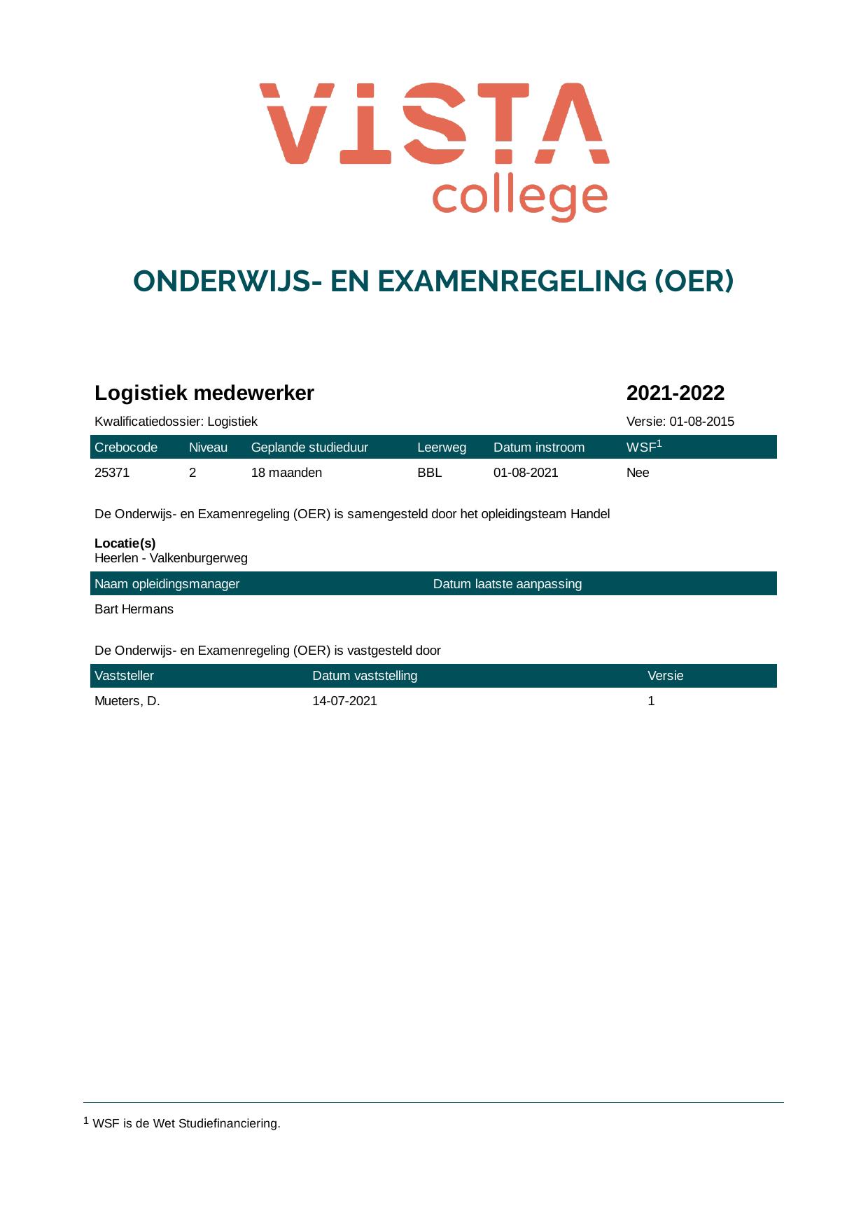 Logistiek teamleider 1L25372BV2V1 in cohort 2021-2022