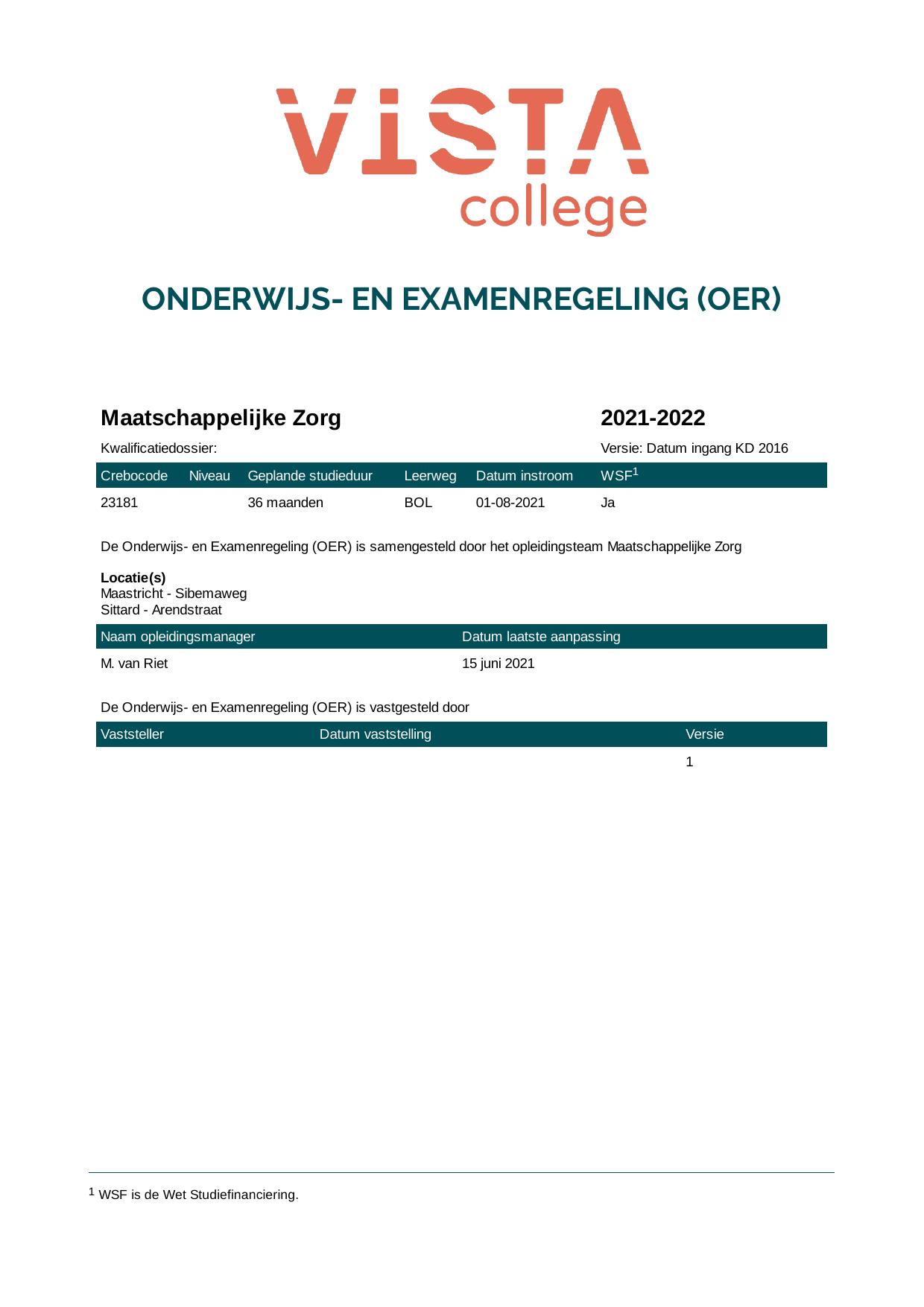 Maatschappelijke Zorg 4M23181BV3V1 in cohort 2021-2022