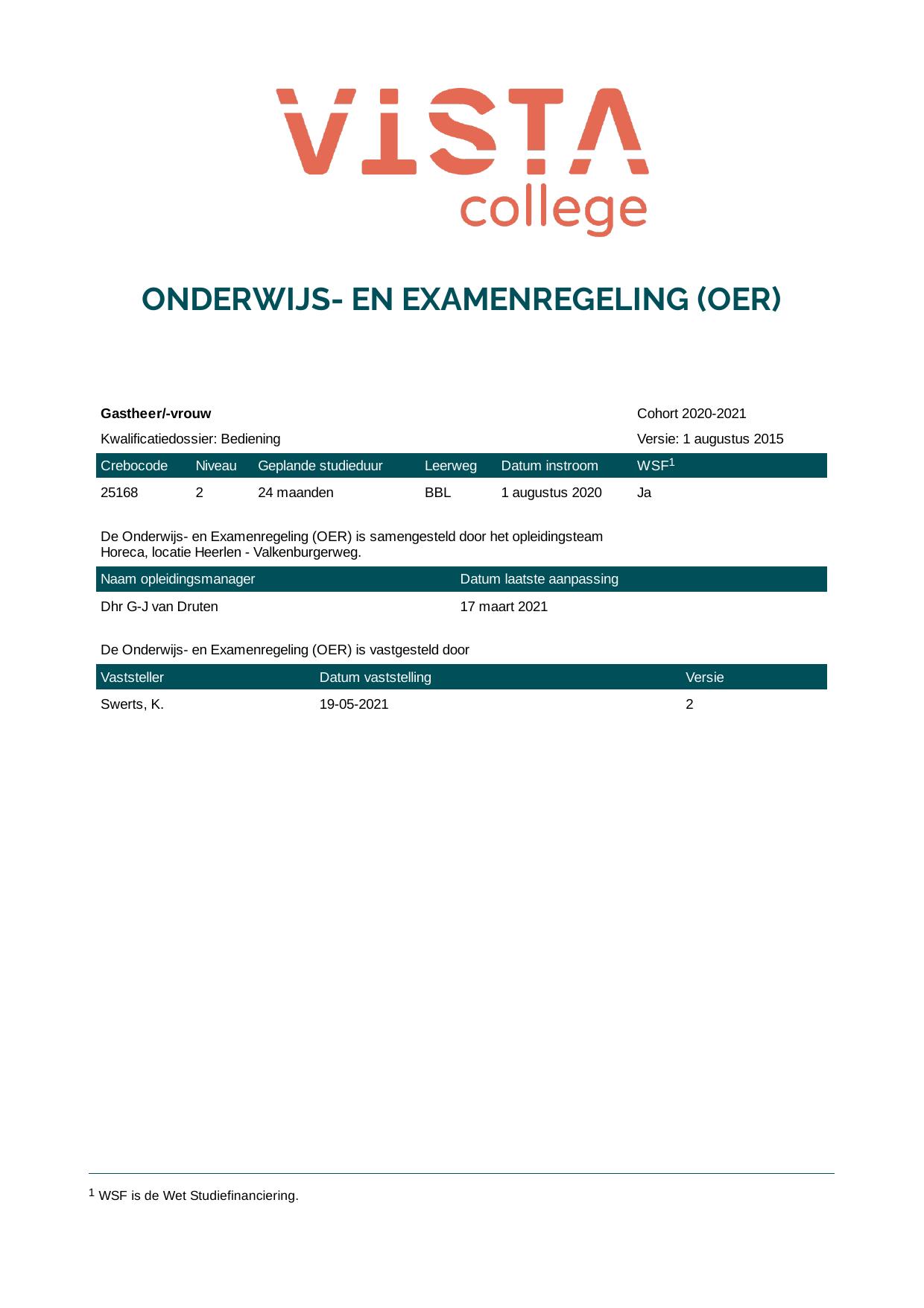 Gastheer/-vrouw 25168B1S in cohort 2020-2021