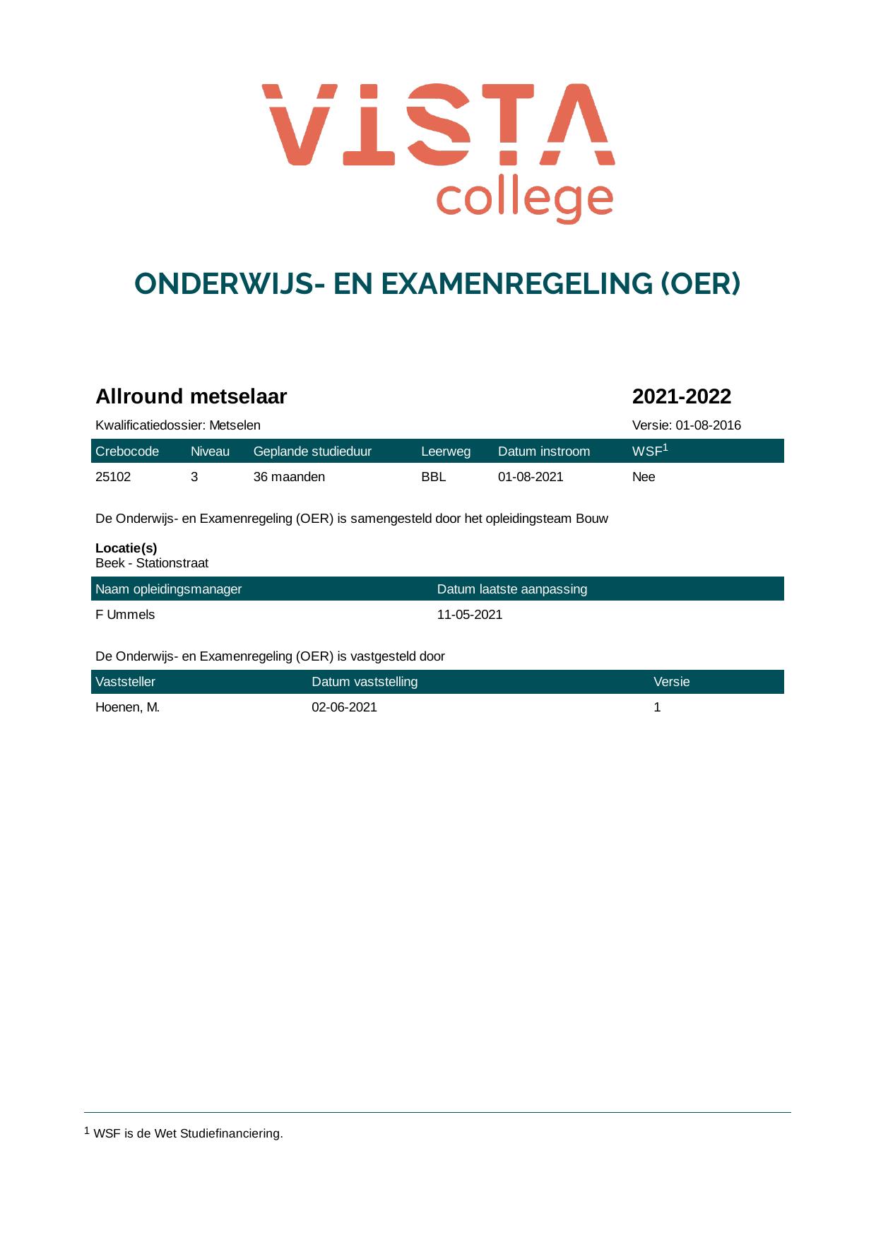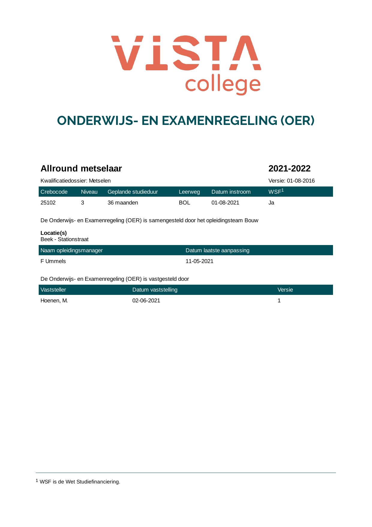 Metselaar 25103O1S in cohort 2020-2021