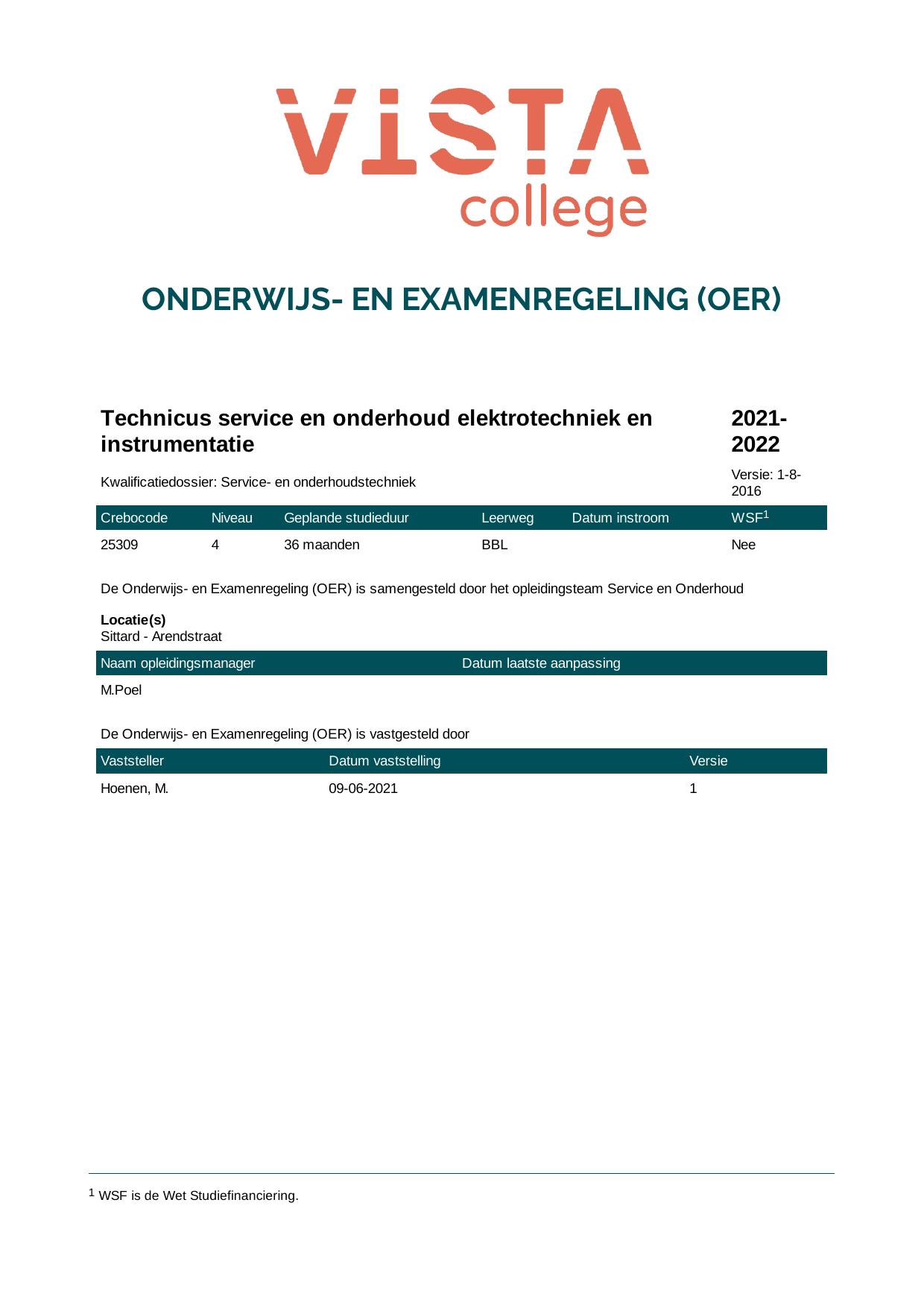 Technicus service en onderhoud elektrotechniek en instrumentatie 25309B1S in cohort 2021-2022