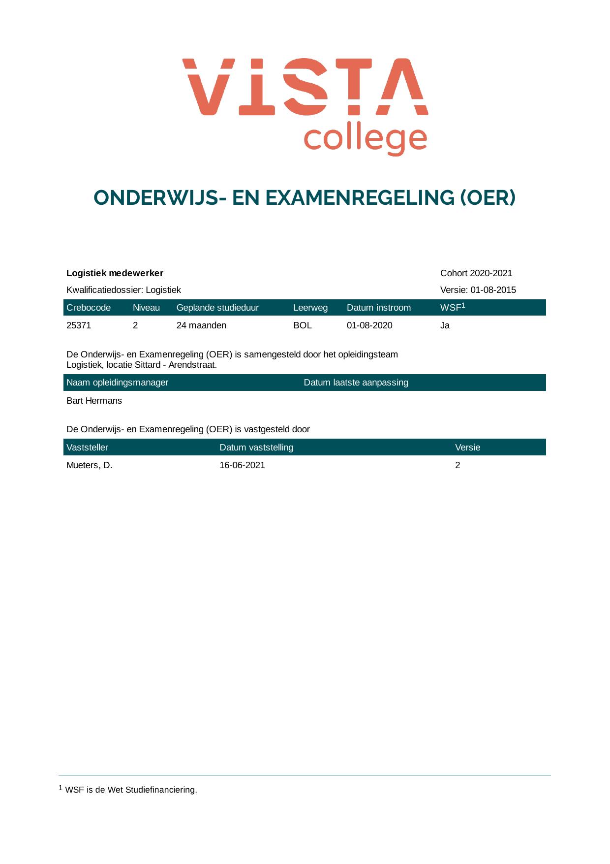 Logistiek medewerker 1L25371BV2V1 in cohort 2020-2021
