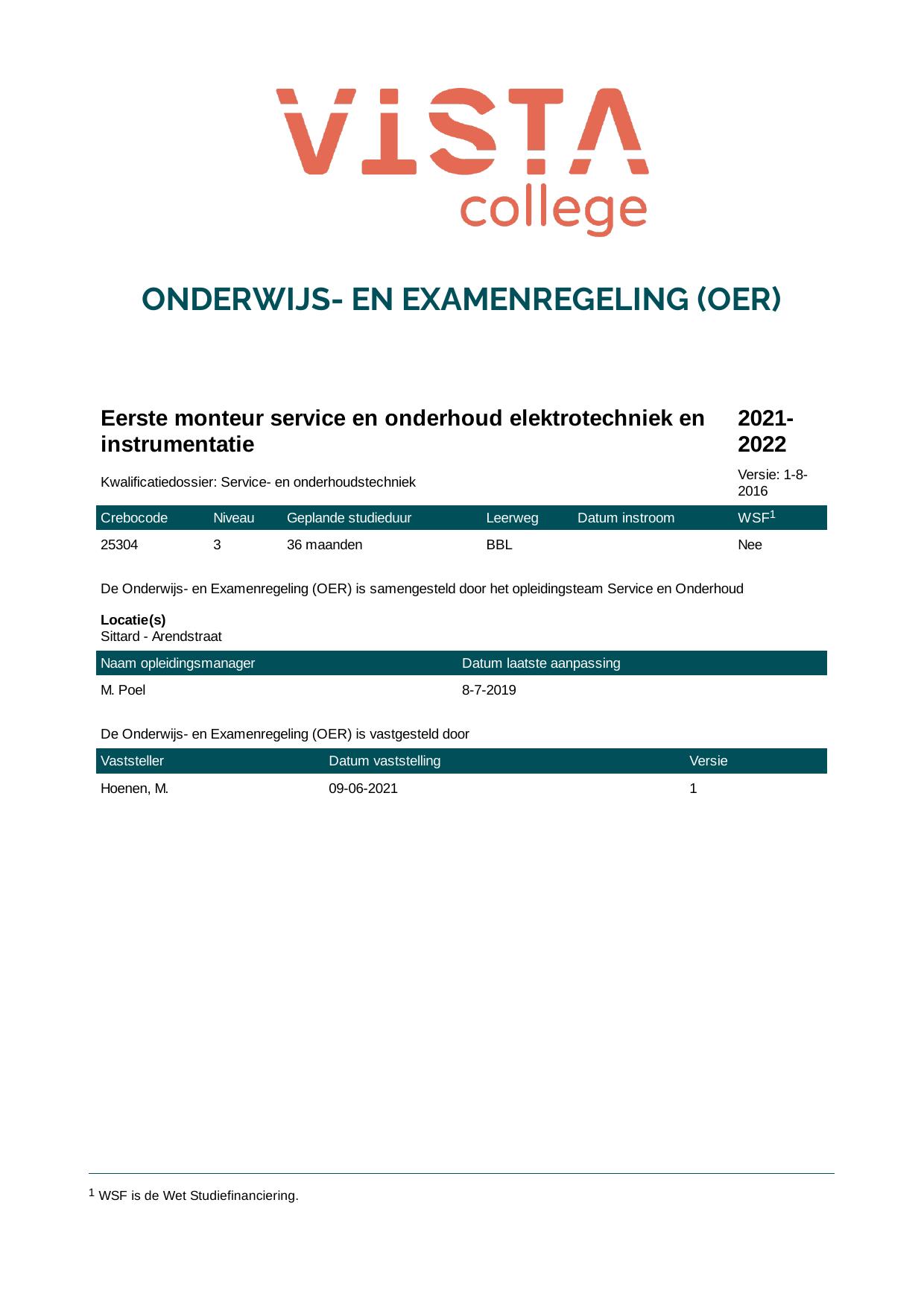 Eerste monteur service en onderhoud elektrotechniek en instrumentatie 25304B1S in cohort 2021-2022