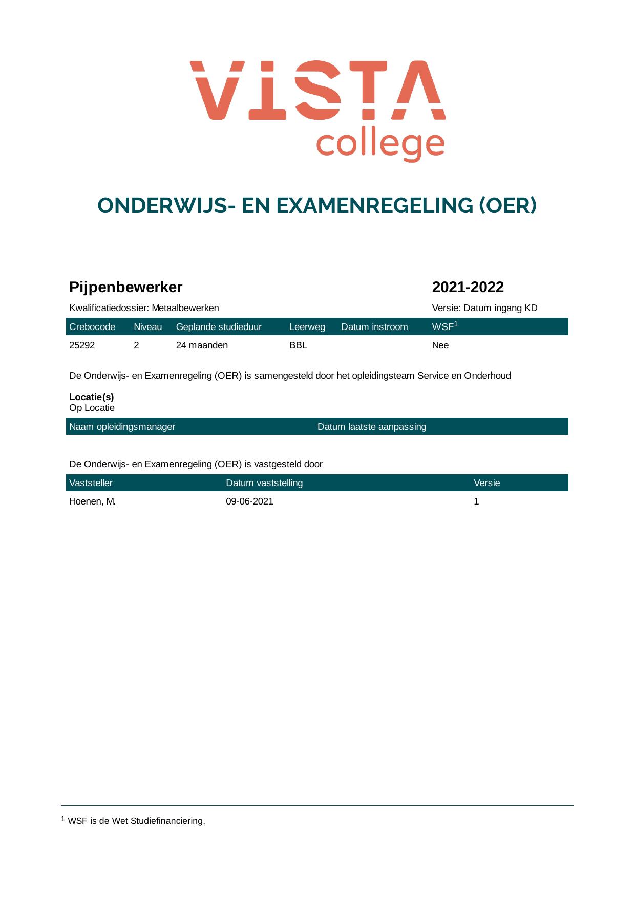 Pijpenbewerker 25292B1S in cohort 2021-2022