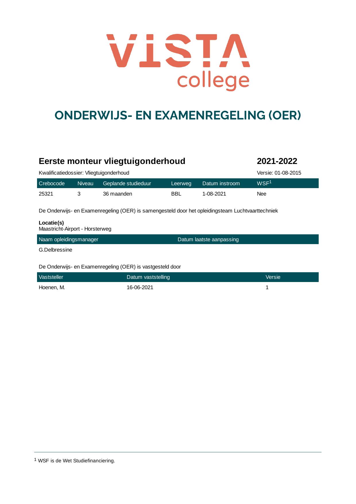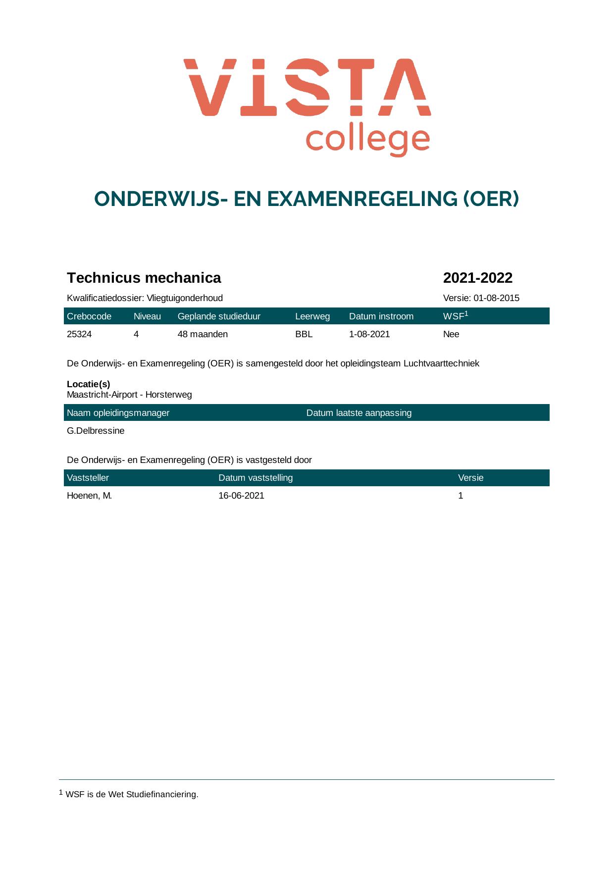 Eerste monteur vliegtuigonderhoud 25321O1S in cohort 2021-2022
