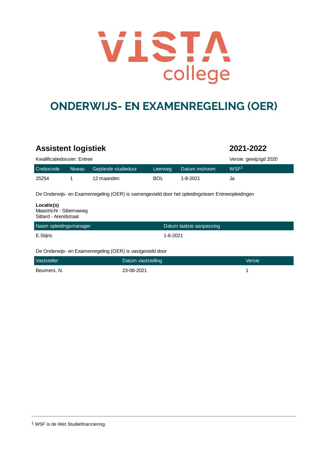 Assistent logistiek 5A25254BV1V1 in cohort 2021-2022