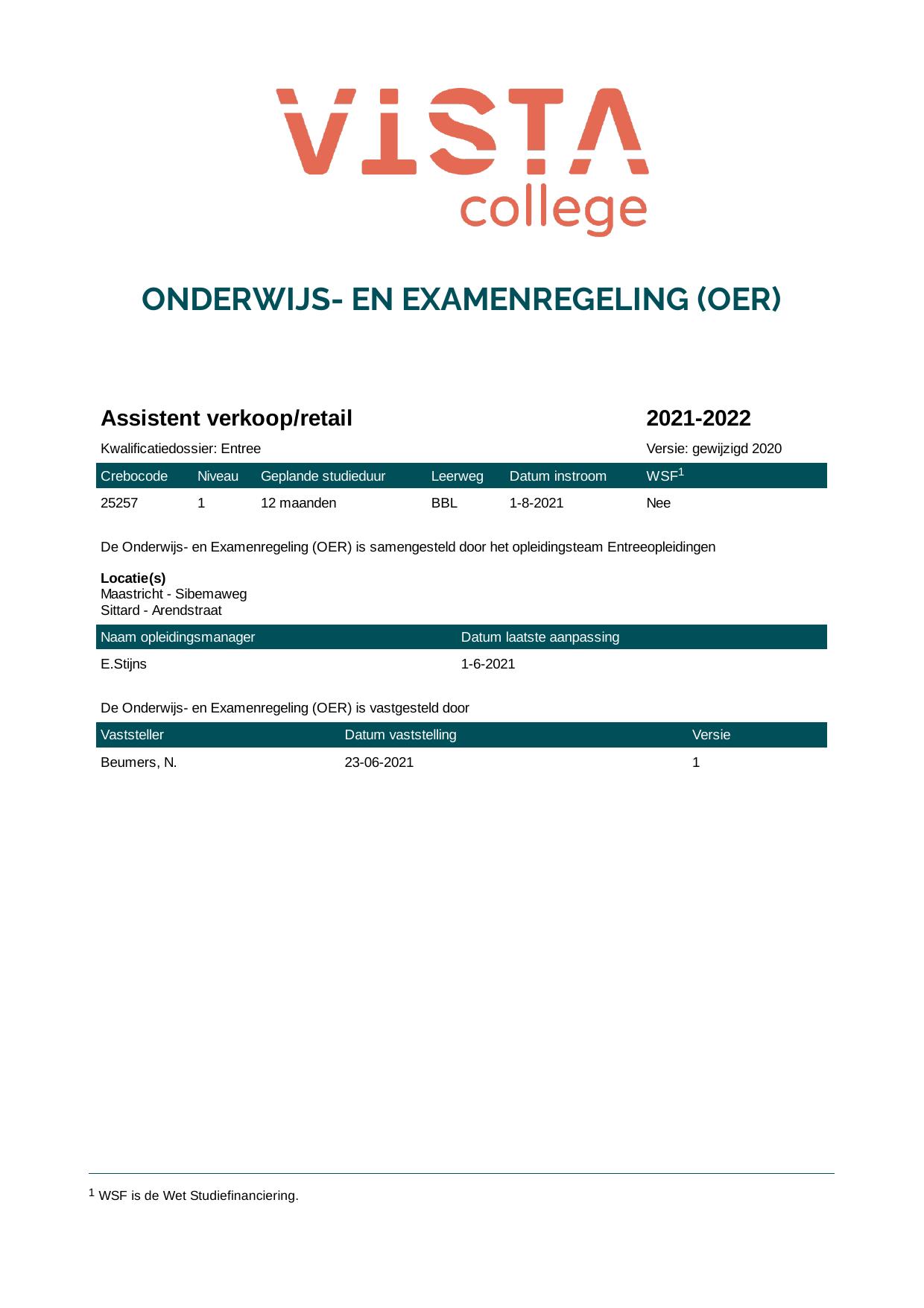 Assistent verkoop/retail 5A25257BB1V1 in cohort 2021-2022