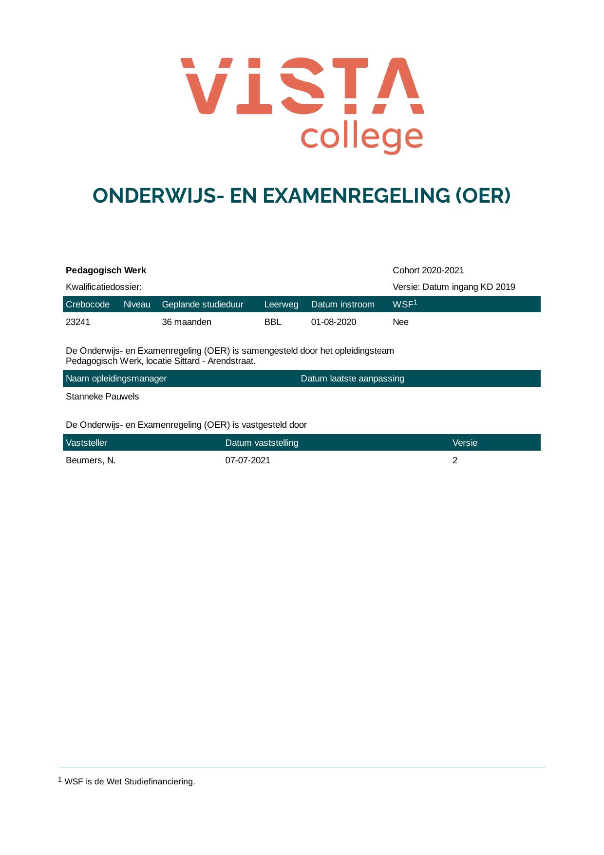 Pedagogisch Werk 4P23241BB3V1 in cohort 2020-2021