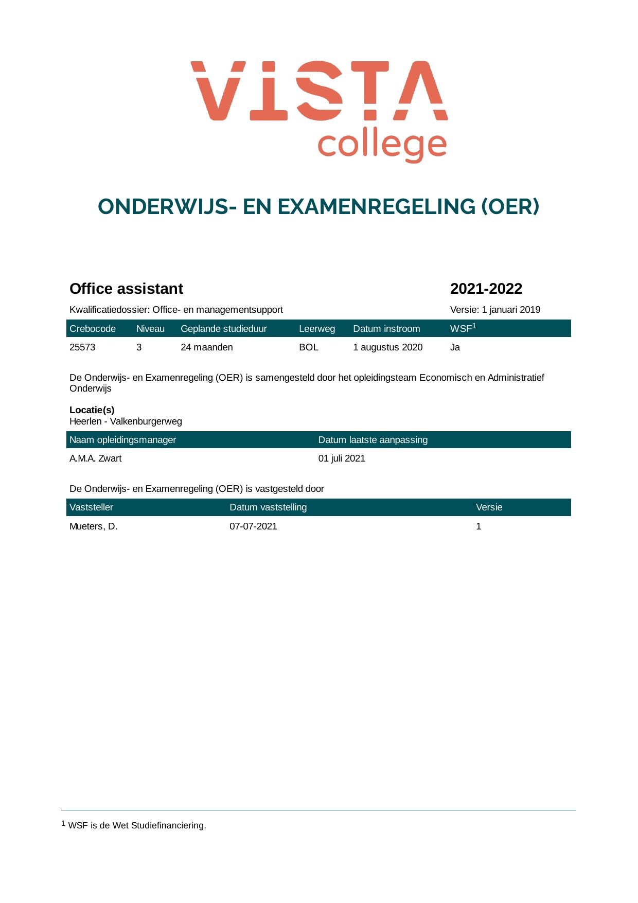 Financieel administratief medewerker 25139O1S in cohort 2021-2022