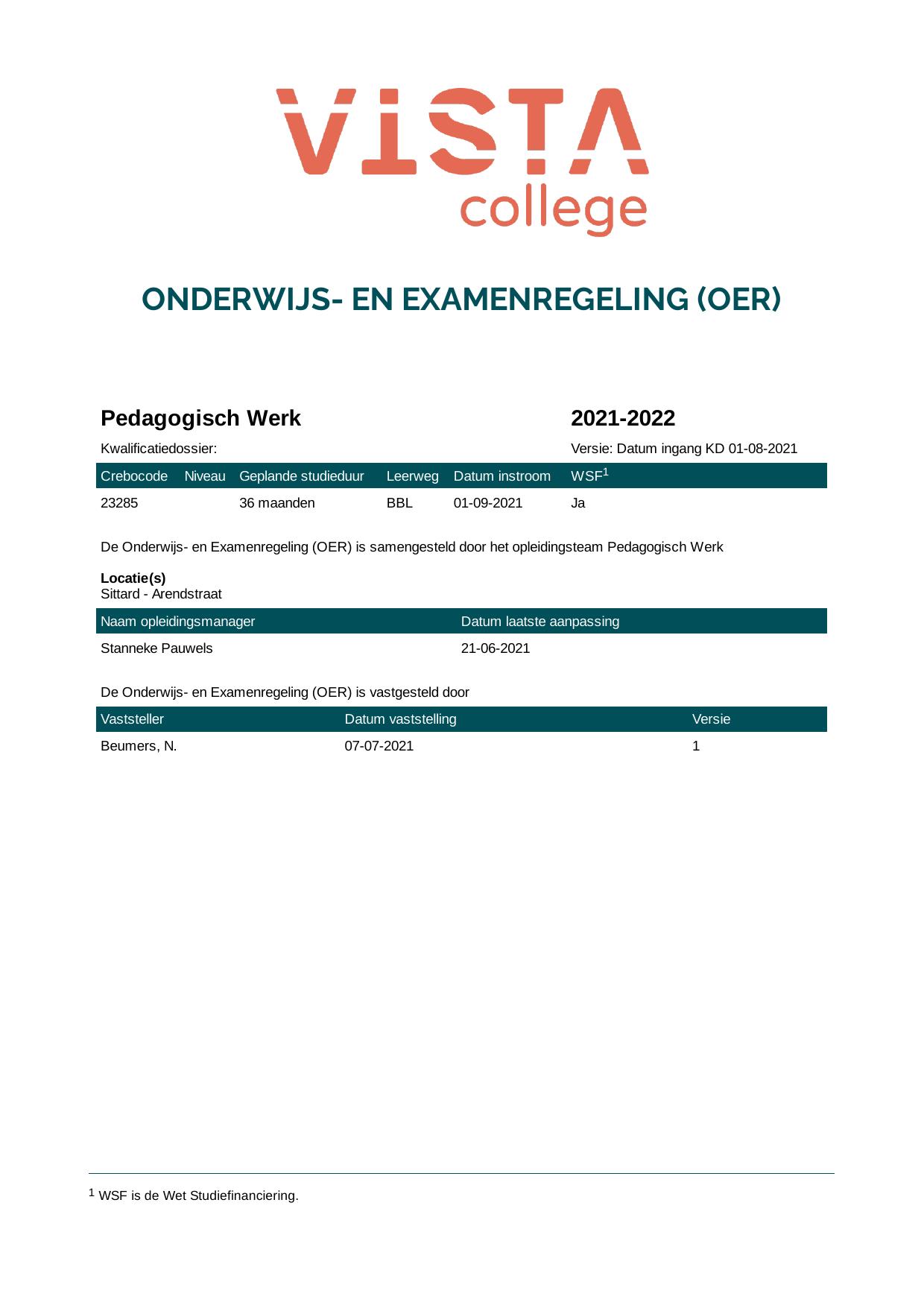 Pedagogisch Werk 4P23285BB3V1 in cohort 2021-2022